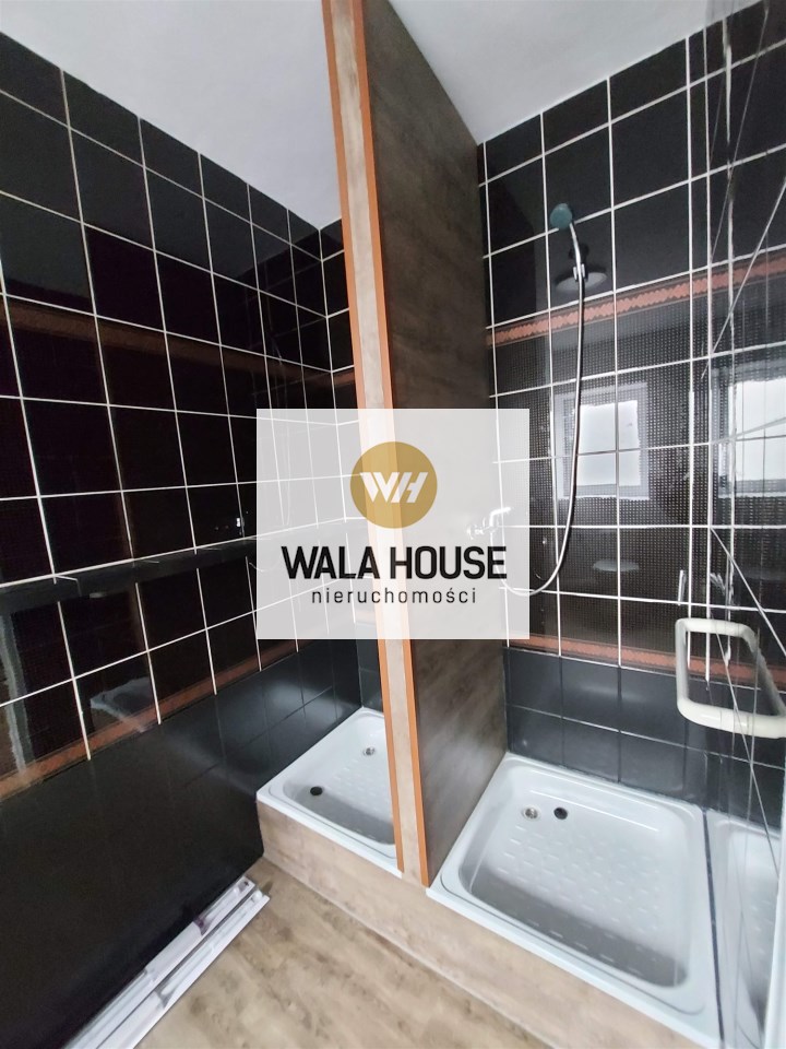 Dodatkowym atutem nieruchomości jest obszerne przyziemie , które zostało zaadoptowane na część mieszkalną i znajdują się tam dwa pokoje kuchnia, wc, Łazienka z trzema kabinami prysznicowymi oraz pralnia.