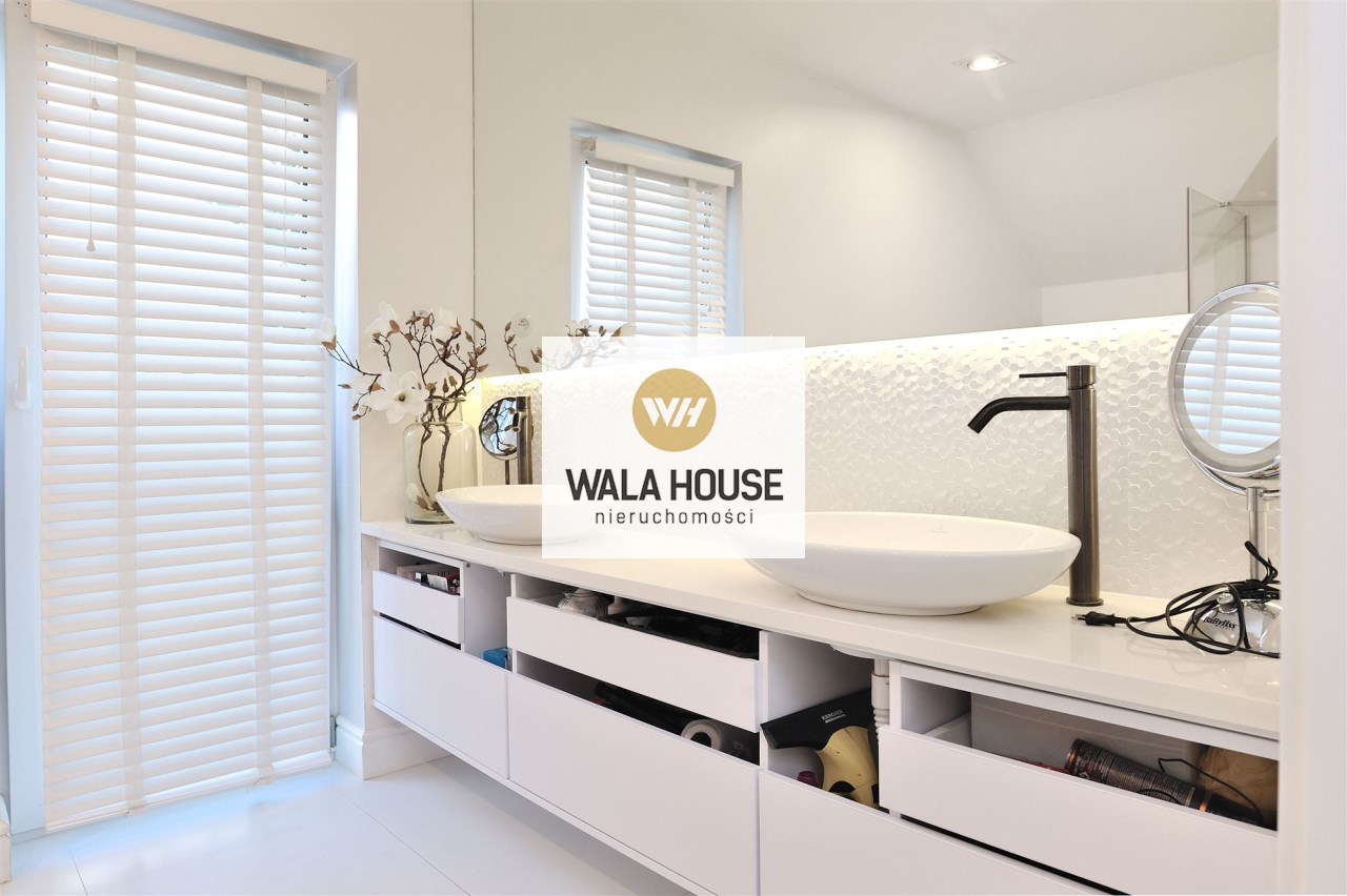 Parter domu składa się z przestronnego salonu z kominkiem, otwartej kuchni z jadalnią, dodatkowego pokoju/gabinetu oraz łazienki. Na tym poziomie znajduje się również pomieszczenie gospodarcze. Na piętrze znajdują się trzy duże sypialnie, z osobnymi garderobami, oraz łazienka z ogrzewaniem podłogowym.