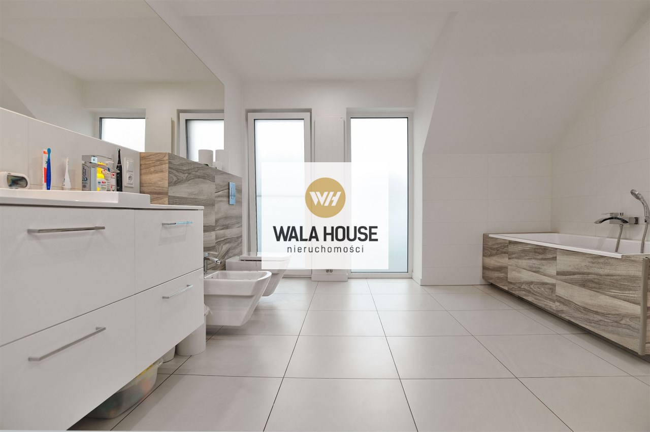 Piętro: trzy komfortowe sypialnie (jedna z garderobą), elegancka łazienka z wanną, prysznicem, bidetem i podwójną umywalką, wyjście na balkon z łazienki i sypialni.