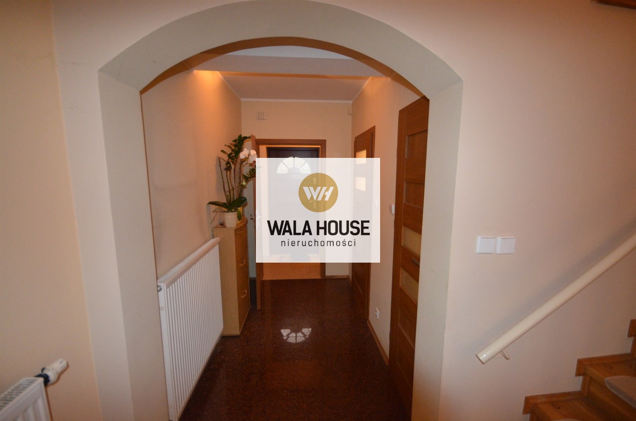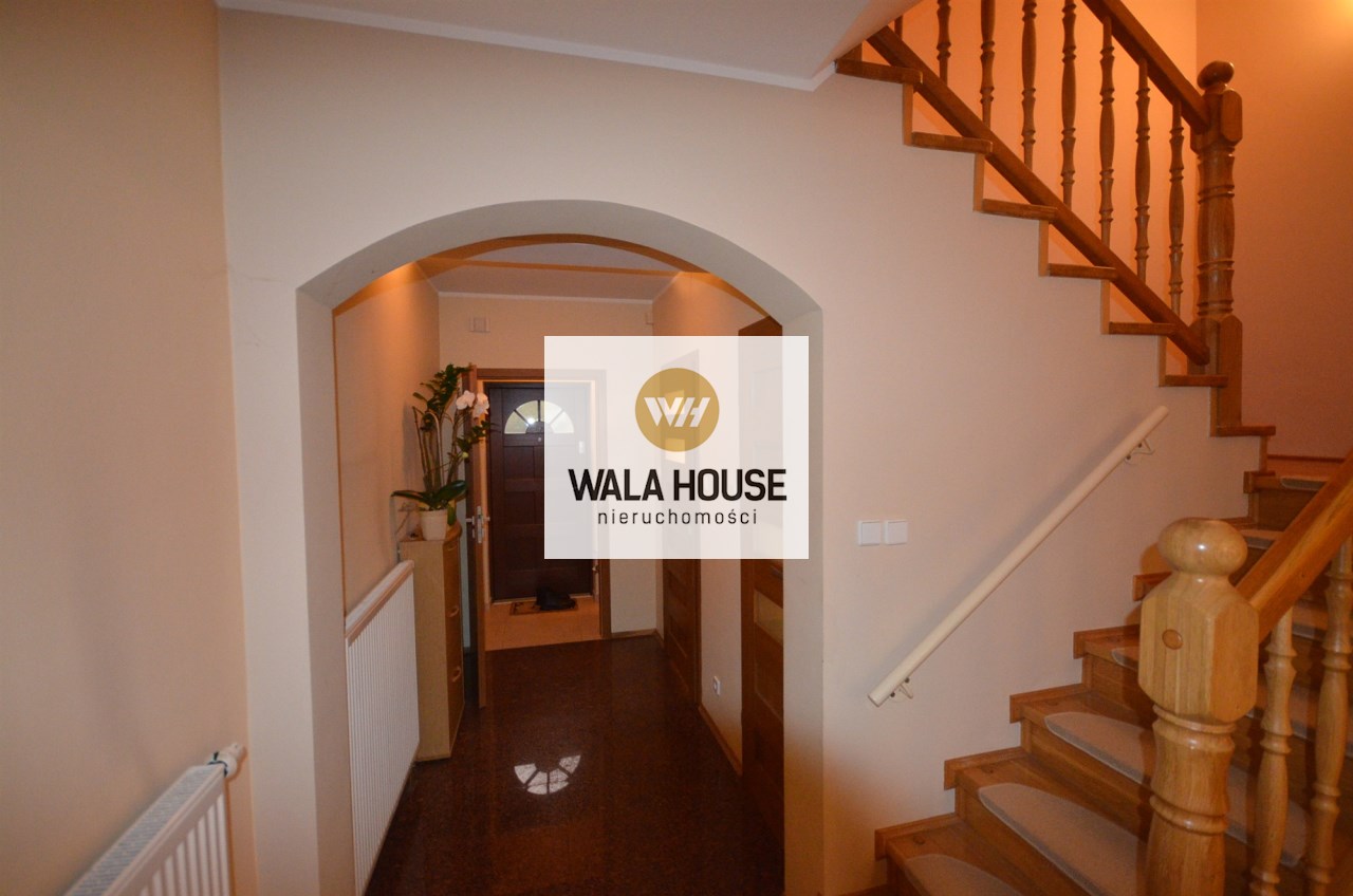 Na pierwszym piętrze znajdują się 3 pokoje, łazienka z wc i wanną. Na poddasze prowadzą również drewniane schody i jest tam zagospodarowany pokój, łazienka z wc oraz duży otwarty pokój z widokiem na ogród. Nieruchomość w pełni umeblowana w standardzie powyżej średniej, po remoncie 3 lata temu . Brama wjazdowa automatycznie zamykana na pilota.