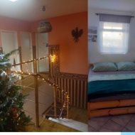 Dom wolnostojący 2-poziomowy z 1982r usytuowany na działkach o pow.462m2 z możliwością rozbudowy o następny poziom z poddaszem użytkowym włącznie . Na parterze 2 pokoje samodzielne świeżo po remoncie , po ok. 20m2 z łazienką i wc ( jeden z bezpośrednim wyjściem do ogródka ) oraz łazienka z wc . Na piętrze 5 pokoi ( jeden duży ok.25m2 , dwa następne po ok. 18m2 - 4- osobowe ) oraz 2 pokoje mniejsze 2-3 osobowe w większości z balkonem i łazienką z wc. W budynku znajdują się 2 pomieszczenia warsztatowe po ok. 12m2 każdy - z możliwoscią wykorzystania na pokoje gościnne , część podpiwniczona .Ogrzewanie centralne - kocioł ; węgiel ,drewno z możliwością przejścia na gaz, na dachu panele słoneczne 2.5kv co daje ok. 8 miesięcy podgrzewania wody za darmo. Standard średni