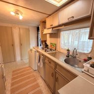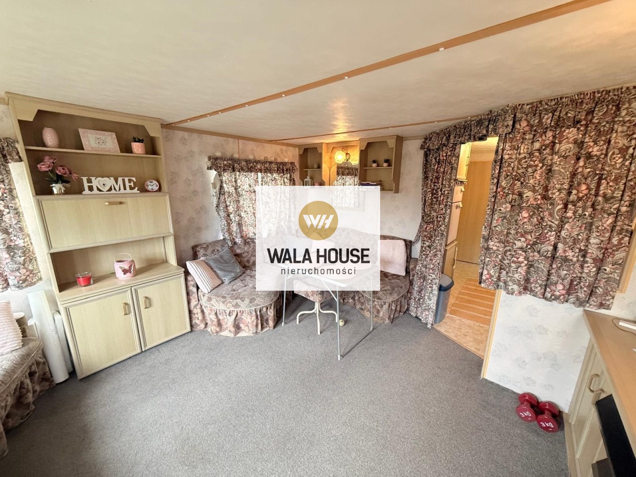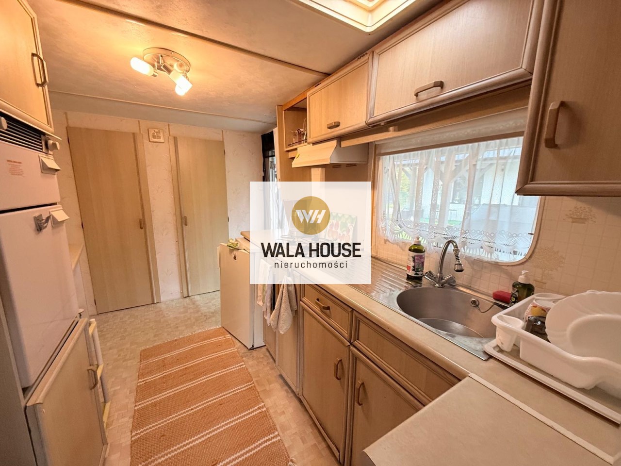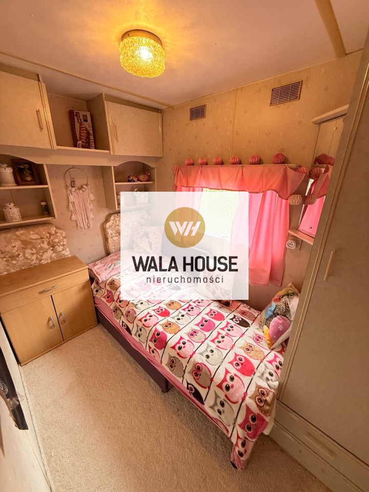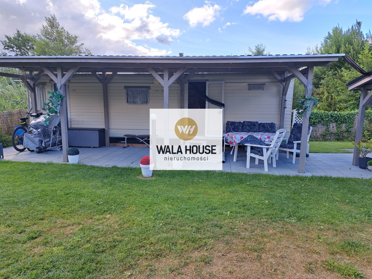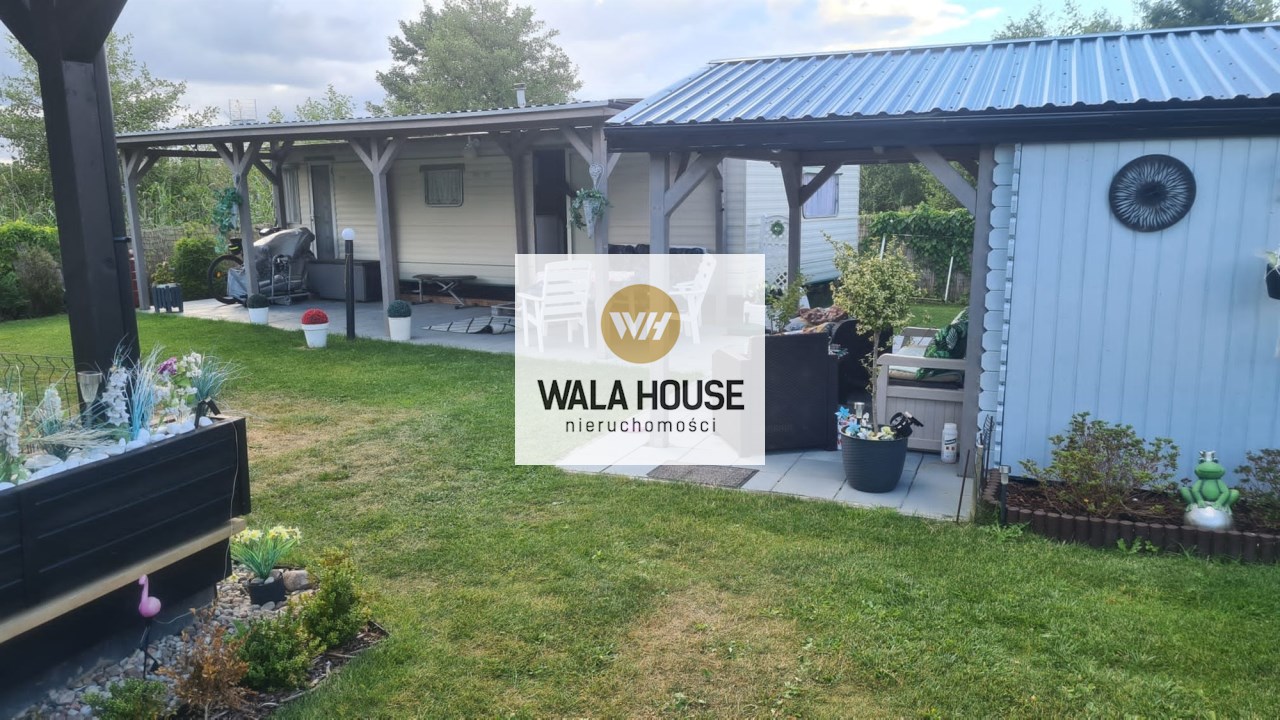 Na działce stoi całoroczny domek holenderski o powierzchni ok. 33m2, w którym jest duży pokój, kuchnia, dwie dodatkowe sypialnie i łazienka.