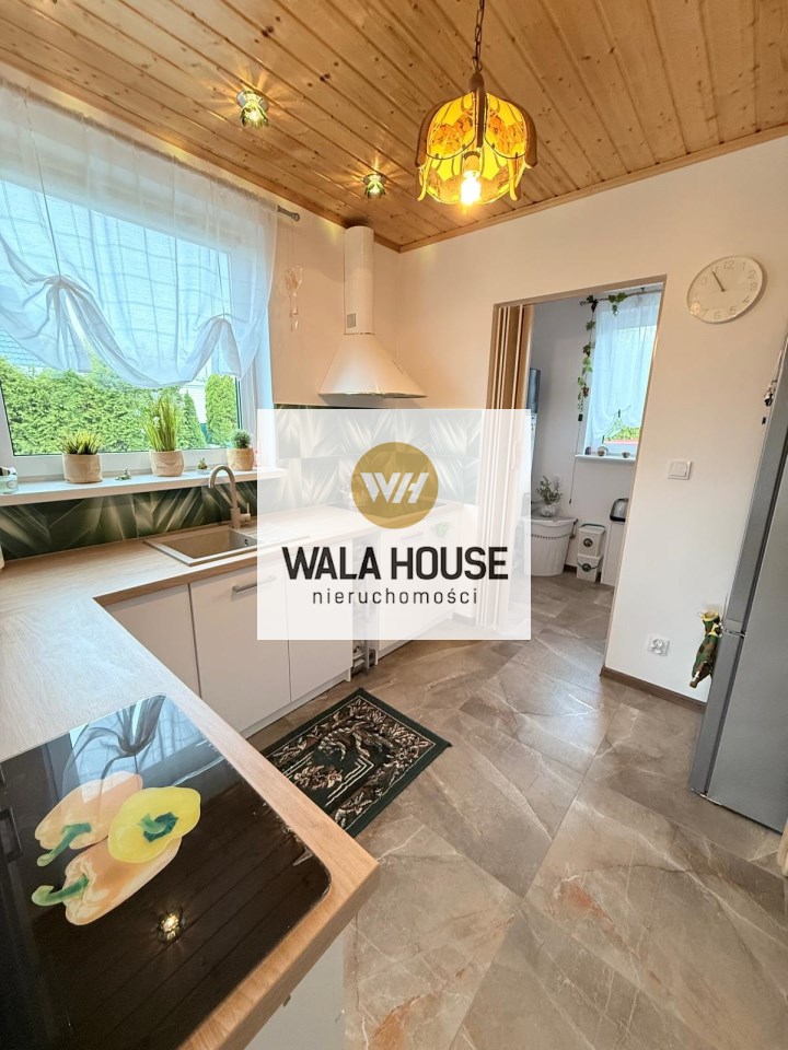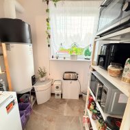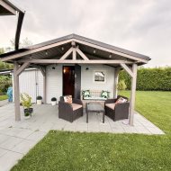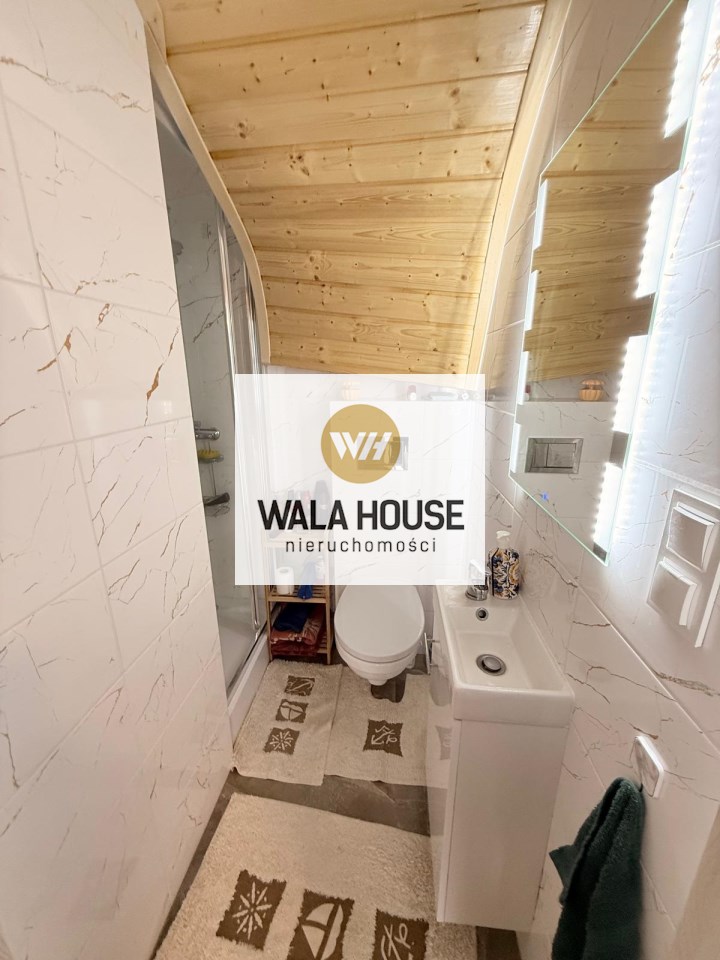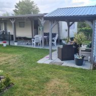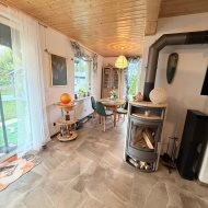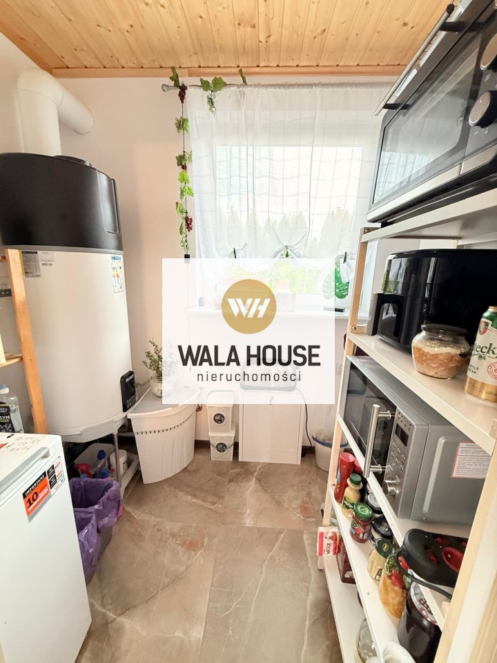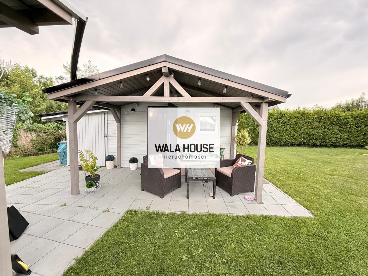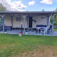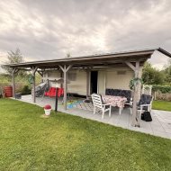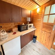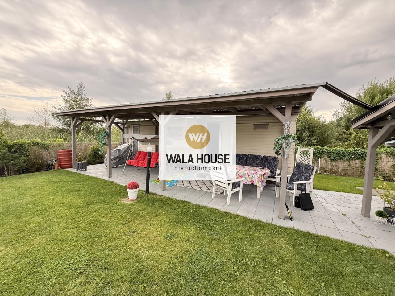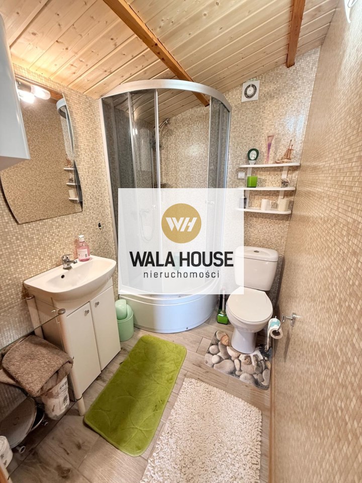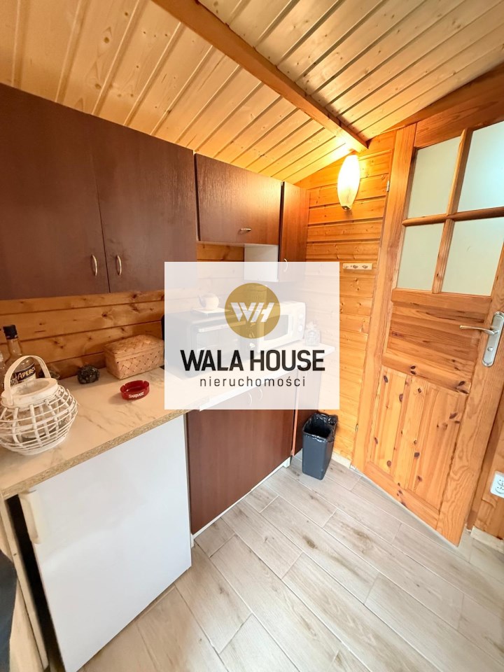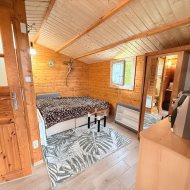 Obok usytuowany jest mniejszy całoroczny domek z jedną sypialnią, kuchnią, łazienką, a tuż przy nim na zewnątrz znajduje się pomieszczenie gospodarcze.