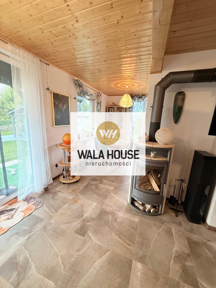 W domu znajduje się kominek i dodatkowo klimatyzacja z grzaniem.