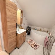 I Piętro (powierzchnia całkowita: 44,11 m2, powierzchnia użytkowa 31 m2): 3 rozkładowe sypialnie, łazienka z wanną narożną.