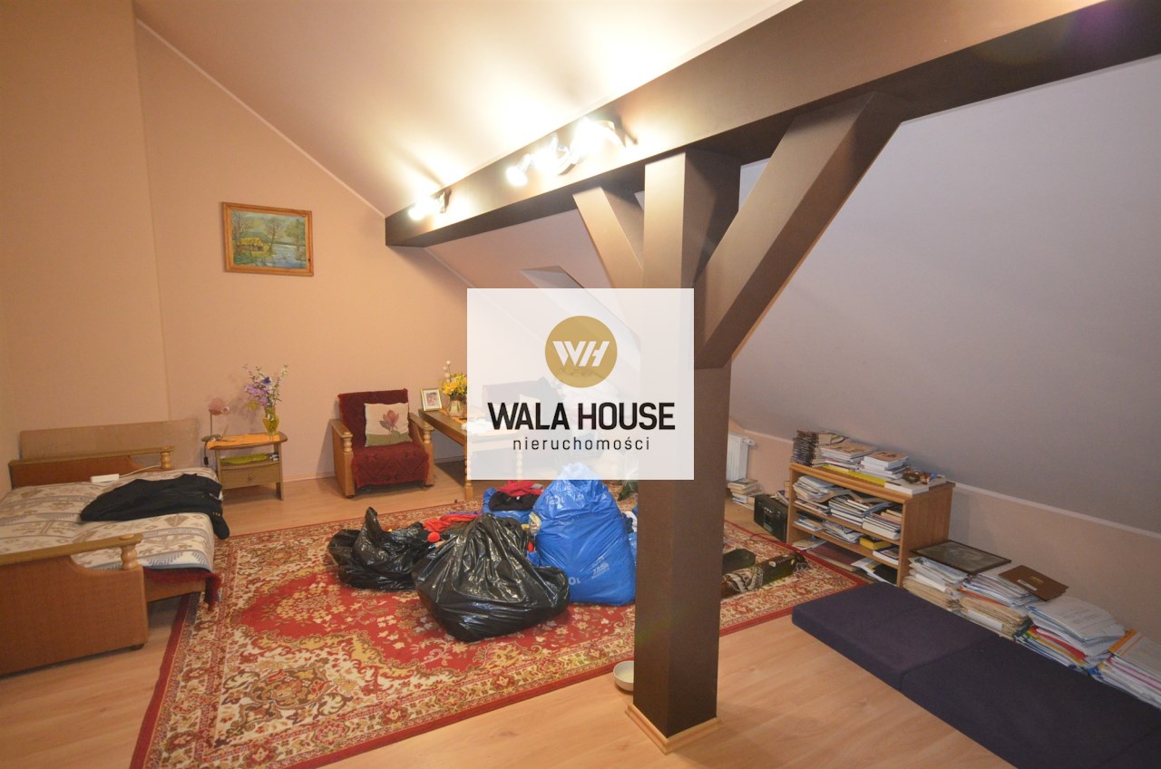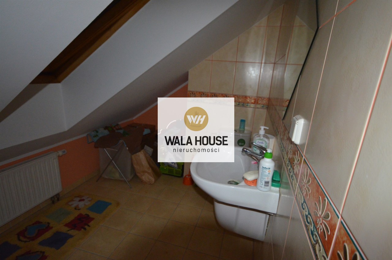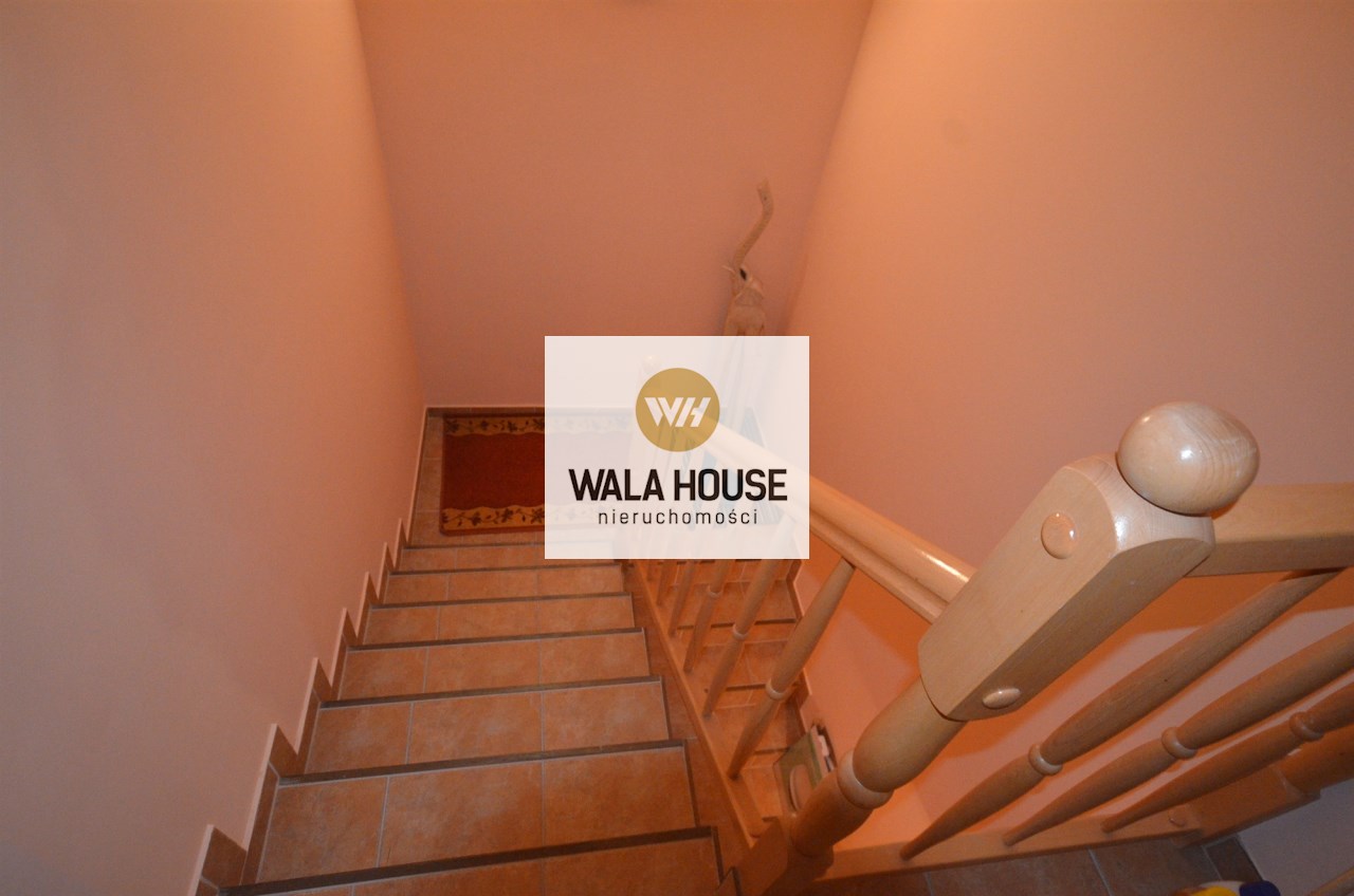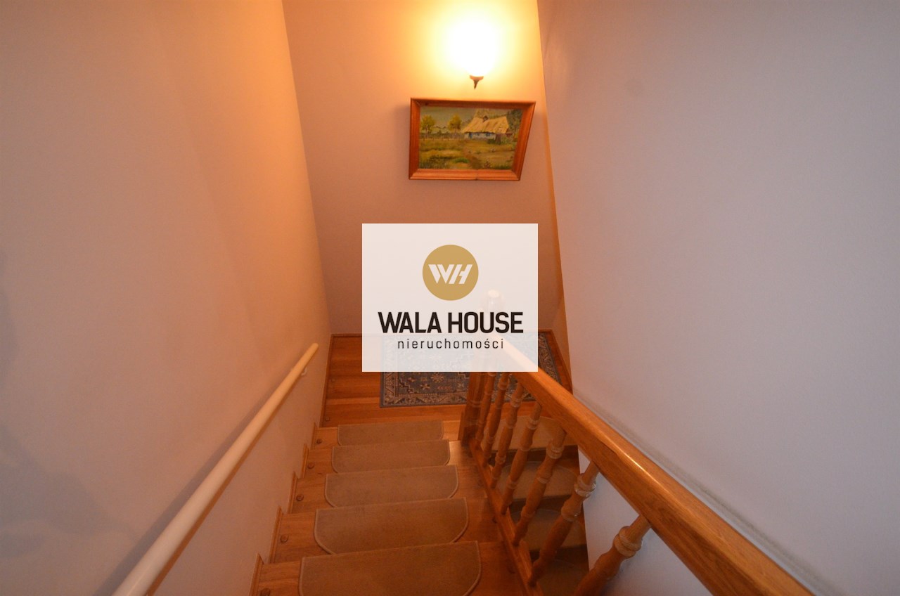 Na pierwszym piętrze znajdują się 3 pokoje, łazienka z wc i wanną. Na poddasze prowadzą również drewniane schody i jest tam zagospodarowany pokój, łazienka z wc oraz duży otwarty pokój z widokiem na ogród. Nieruchomość w pełni umeblowana w standardzie powyżej średniej, po remoncie 3 lata temu