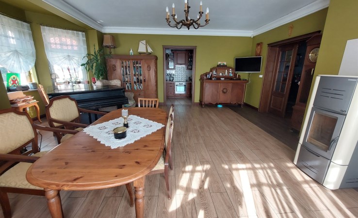 Dom został wybudowany w 1999 roku i posadowiony na przestronnej, pięknie zagospodarowanej działce o powierzchni 3325 m². Dach pokryto blachodachówką, a całość zaprojektowano z myślą o wygodnym, codziennym funkcjonowaniu całej rodziny.