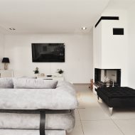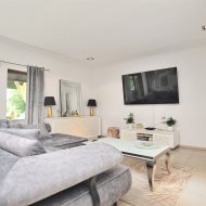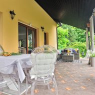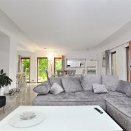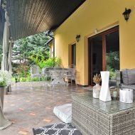 Przestronny, jasny salon z wyjściem na zadaszony taras od strony południowej