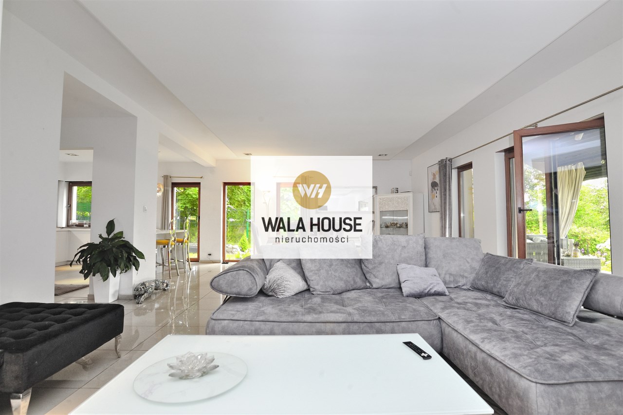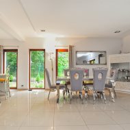 Przestronny, jasny salon z wyjściem na zadaszony taras od strony południowej