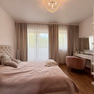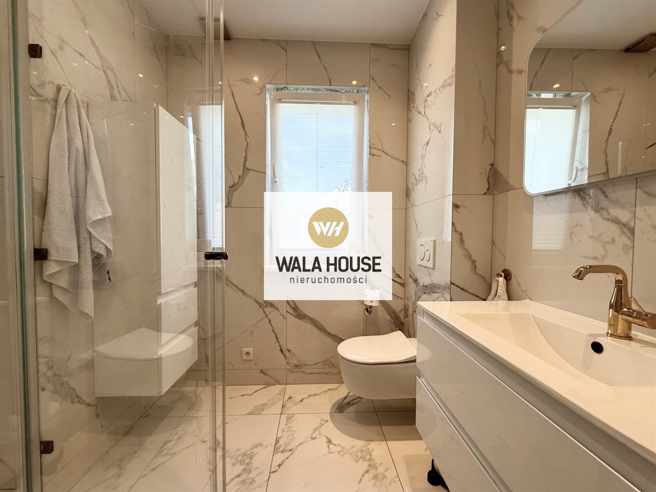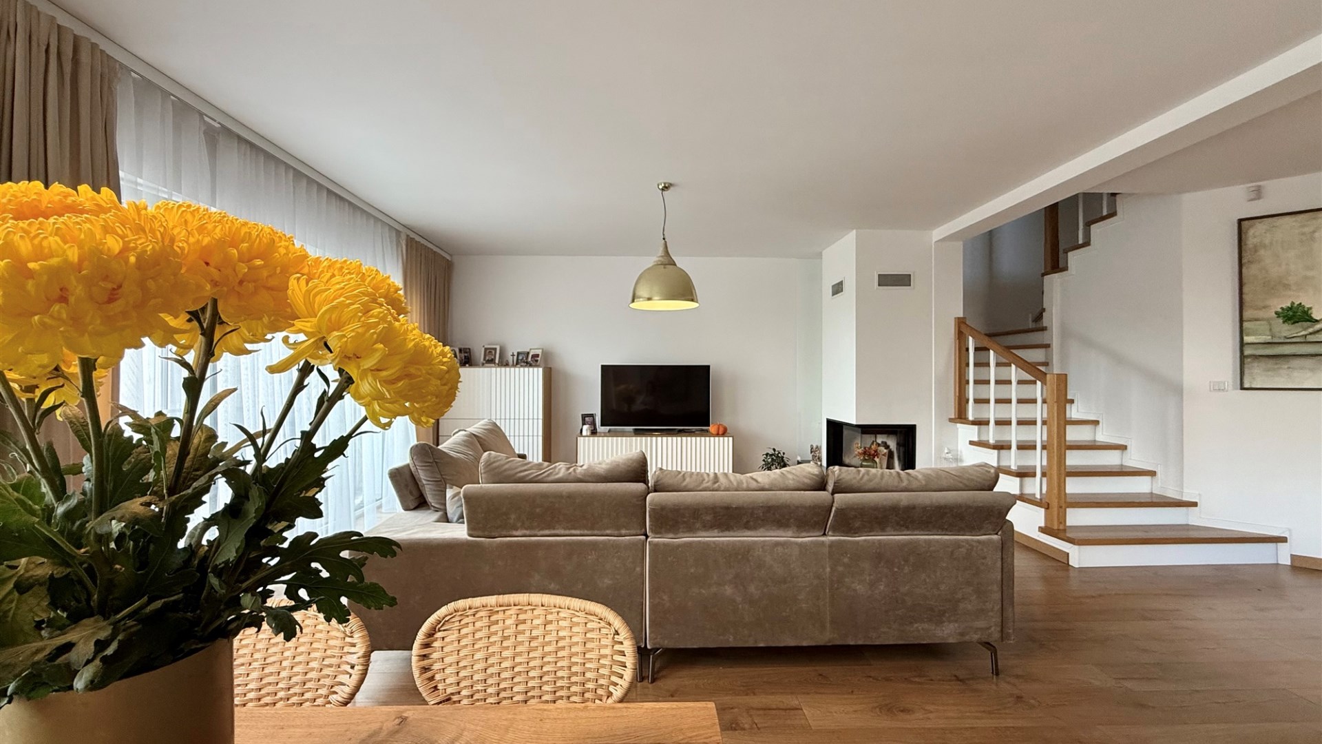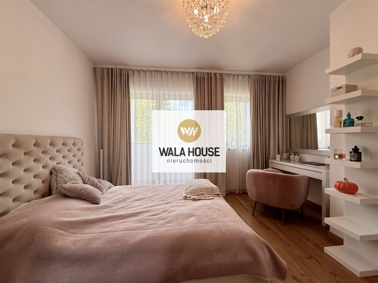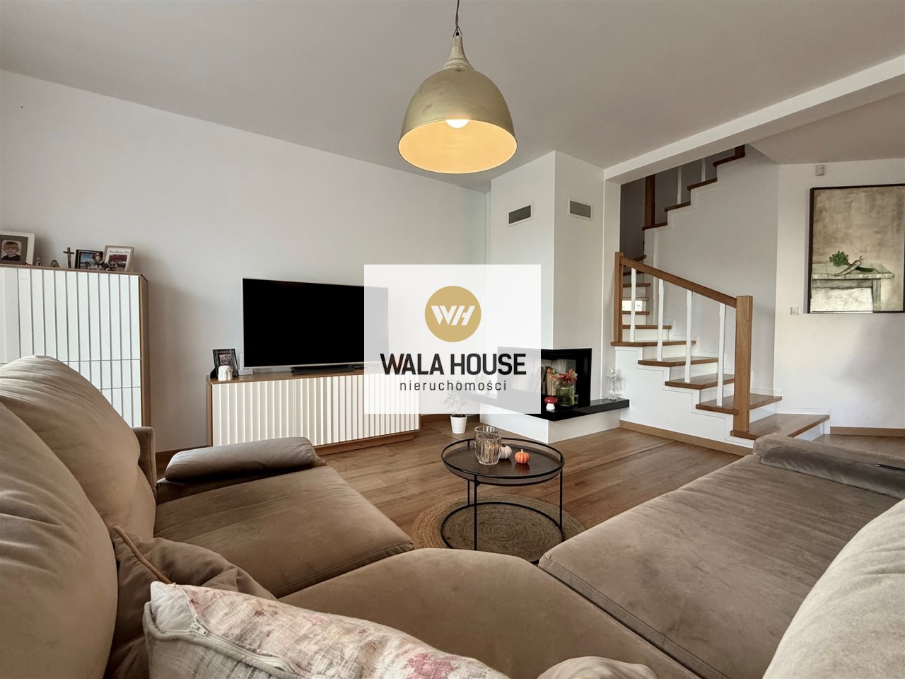 Wnętrze domu obejmuje 5 pokoi, w tym 4 sypialnie z czego jedna została zagospodarowana na garderobę, co zapewnia wygodę nawet dla dużej rodziny. Budynek z garażem w bryle i bezpośrednim wejściem do części mieszkalnej.