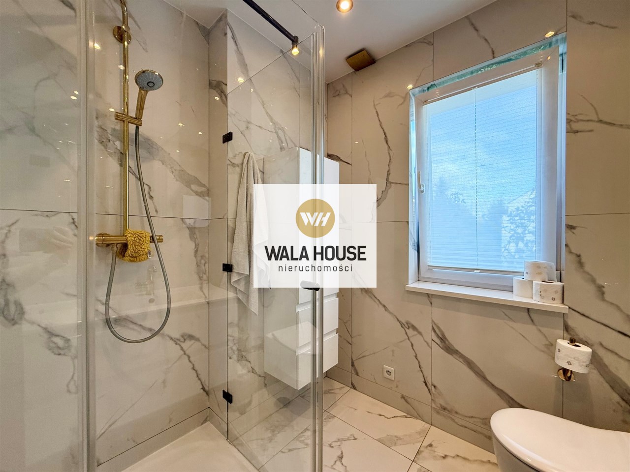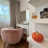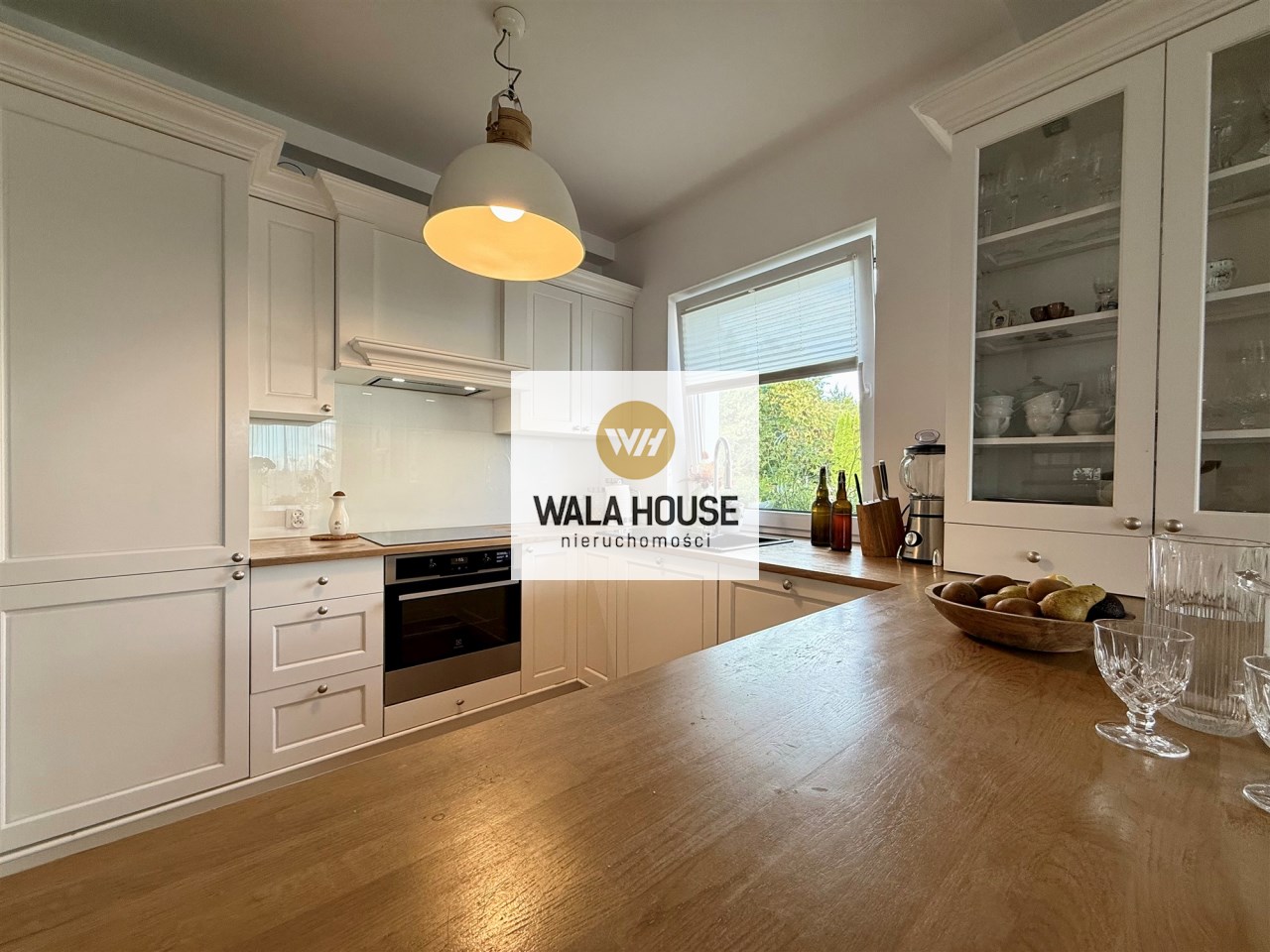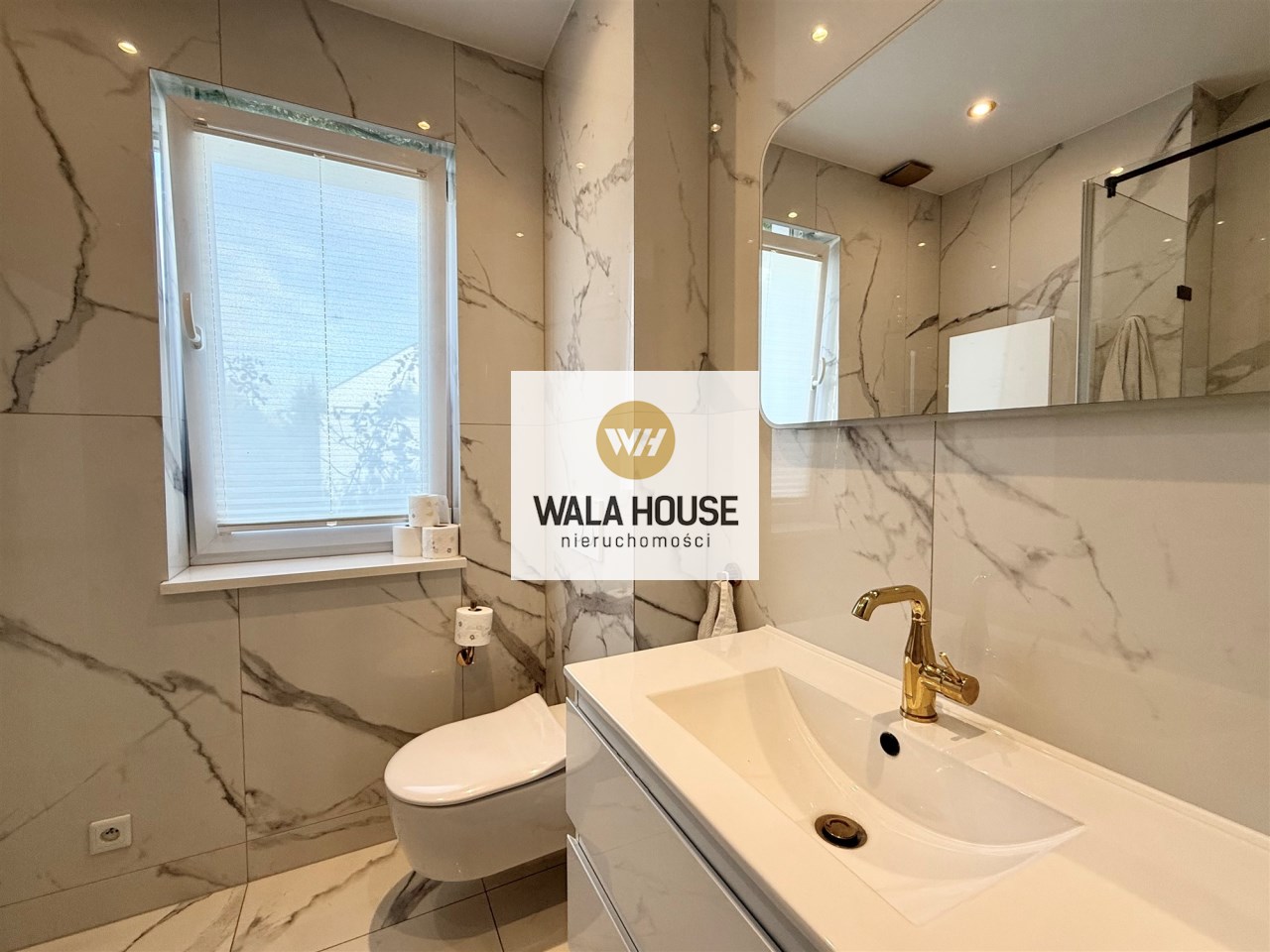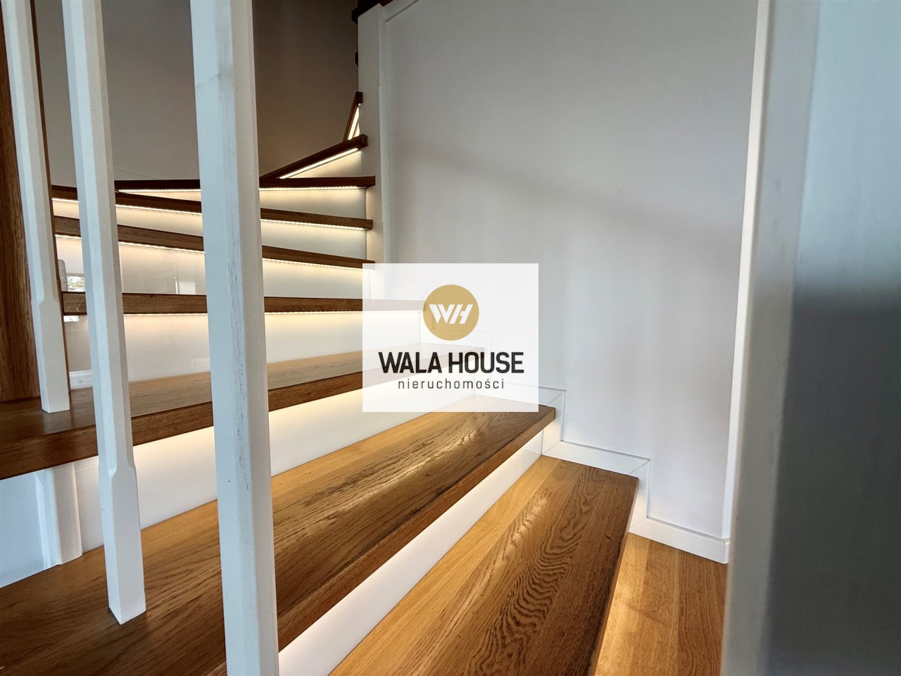 Wnętrze domu obejmuje 5 pokoi, w tym 4 sypialnie z czego jedna została zagospodarowana na garderobę, co zapewnia wygodę nawet dla dużej rodziny. Budynek z garażem w bryle i bezpośrednim wejściem do części mieszkalnej.