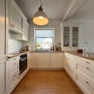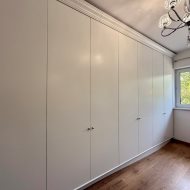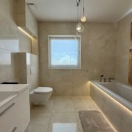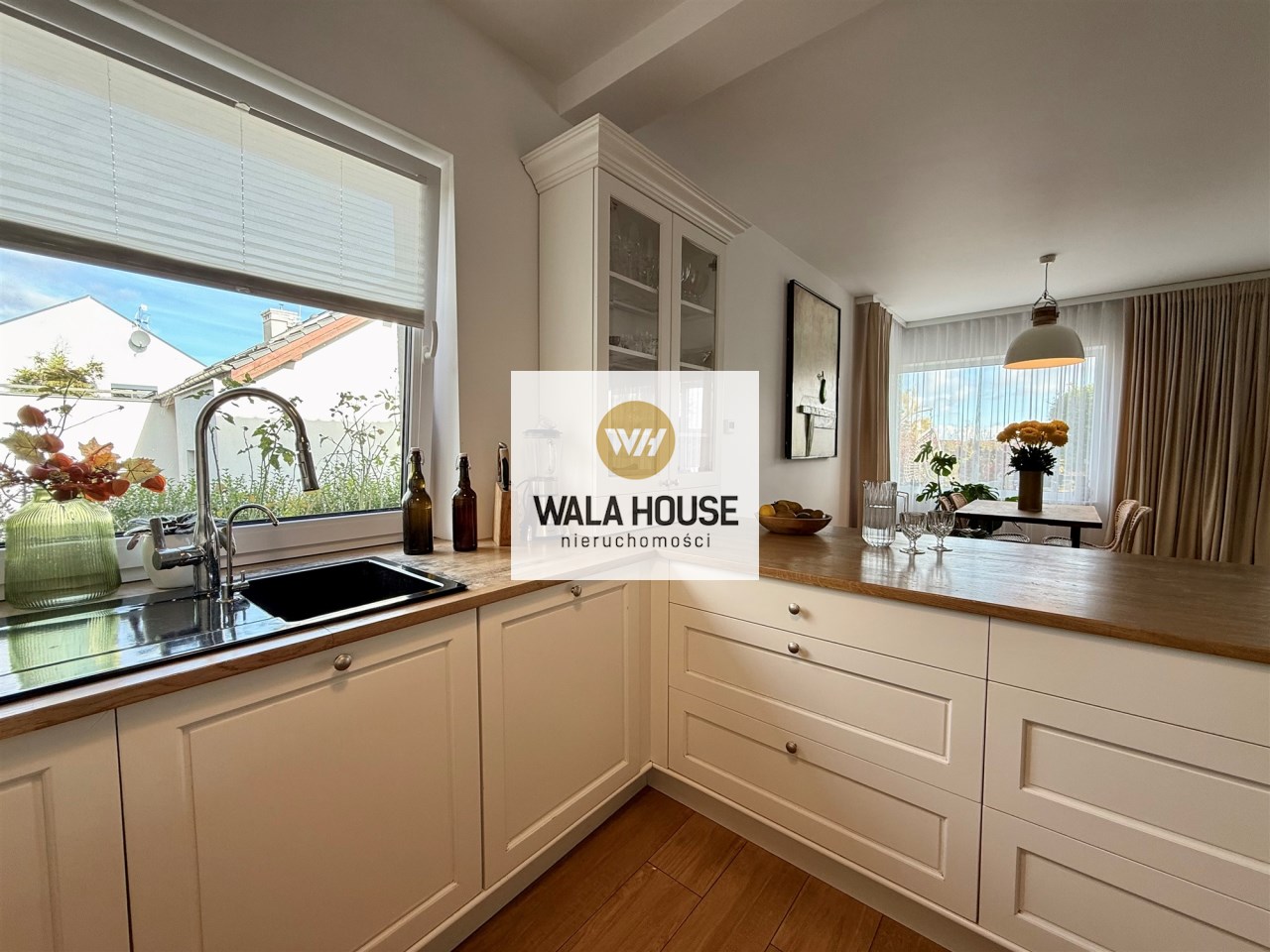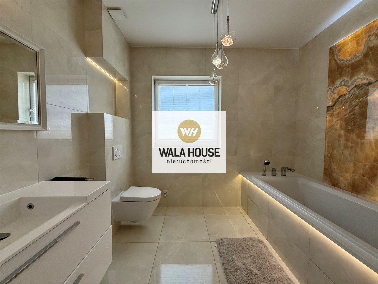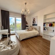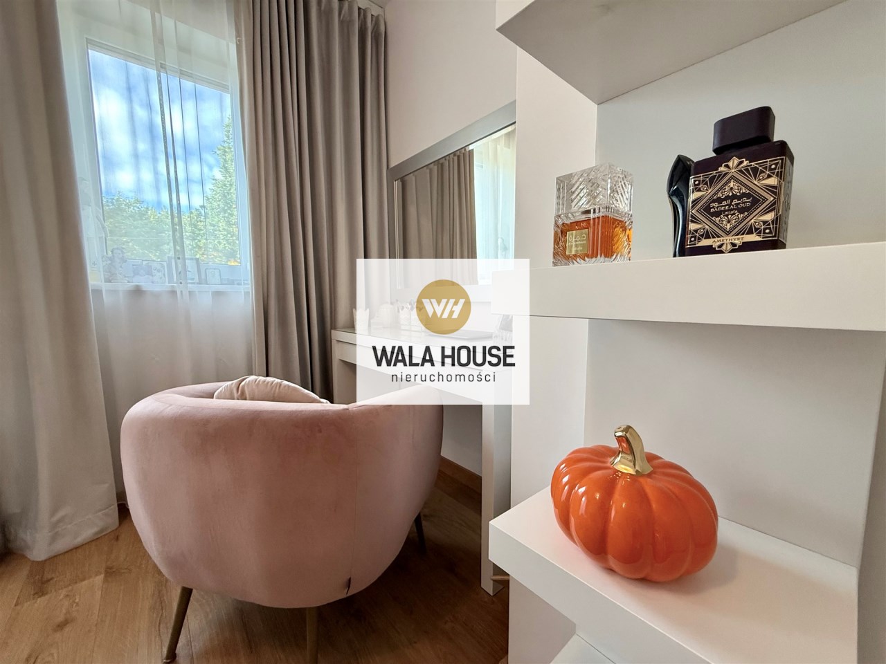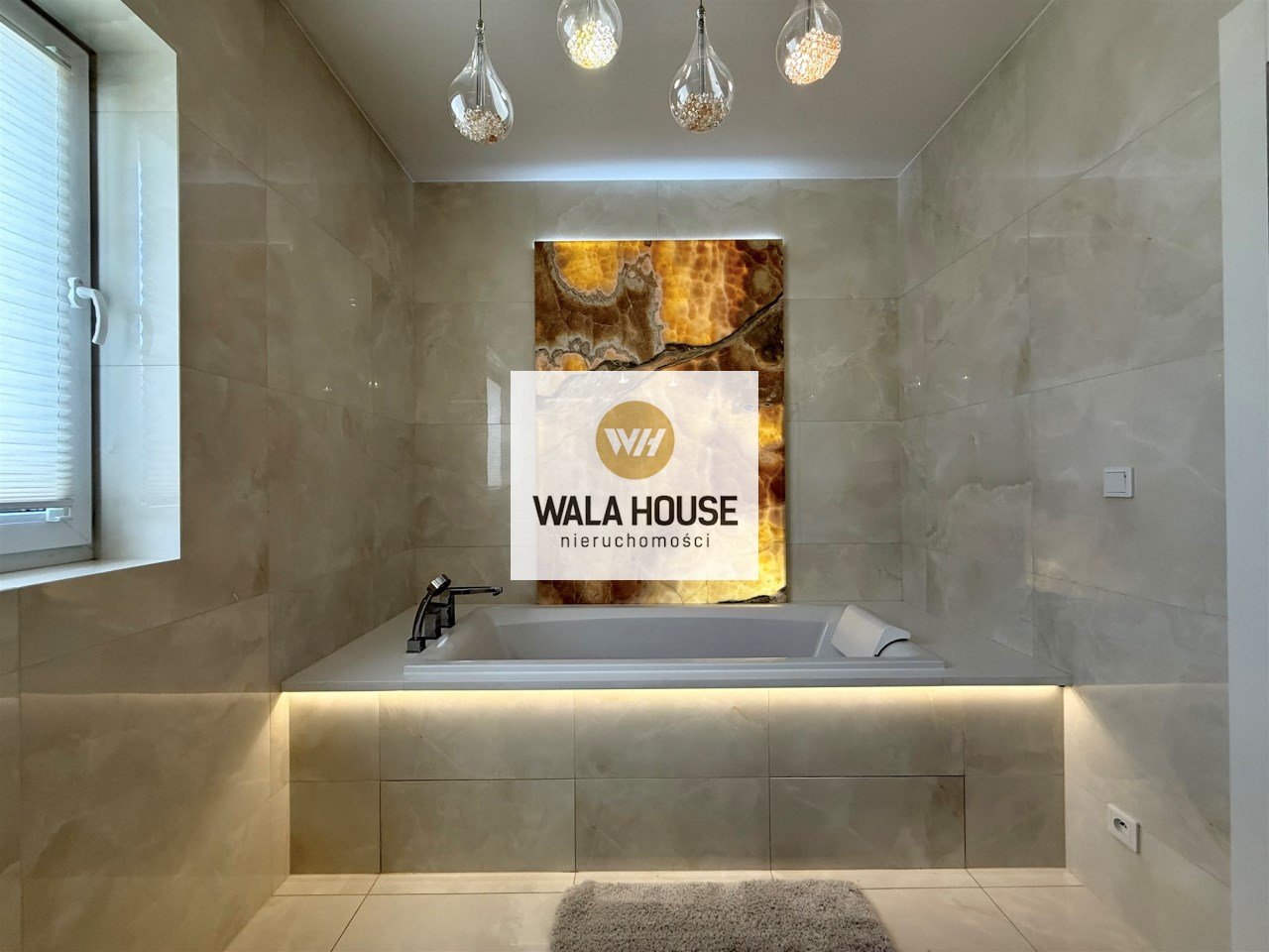 Wnętrze domu obejmuje 5 pokoi, w tym 4 sypialnie z czego jedna została zagospodarowana na garderobę, co zapewnia wygodę nawet dla dużej rodziny. Budynek z garażem w bryle i bezpośrednim wejściem do części mieszkalnej.