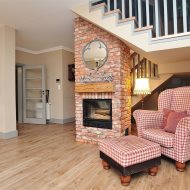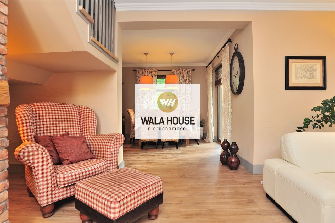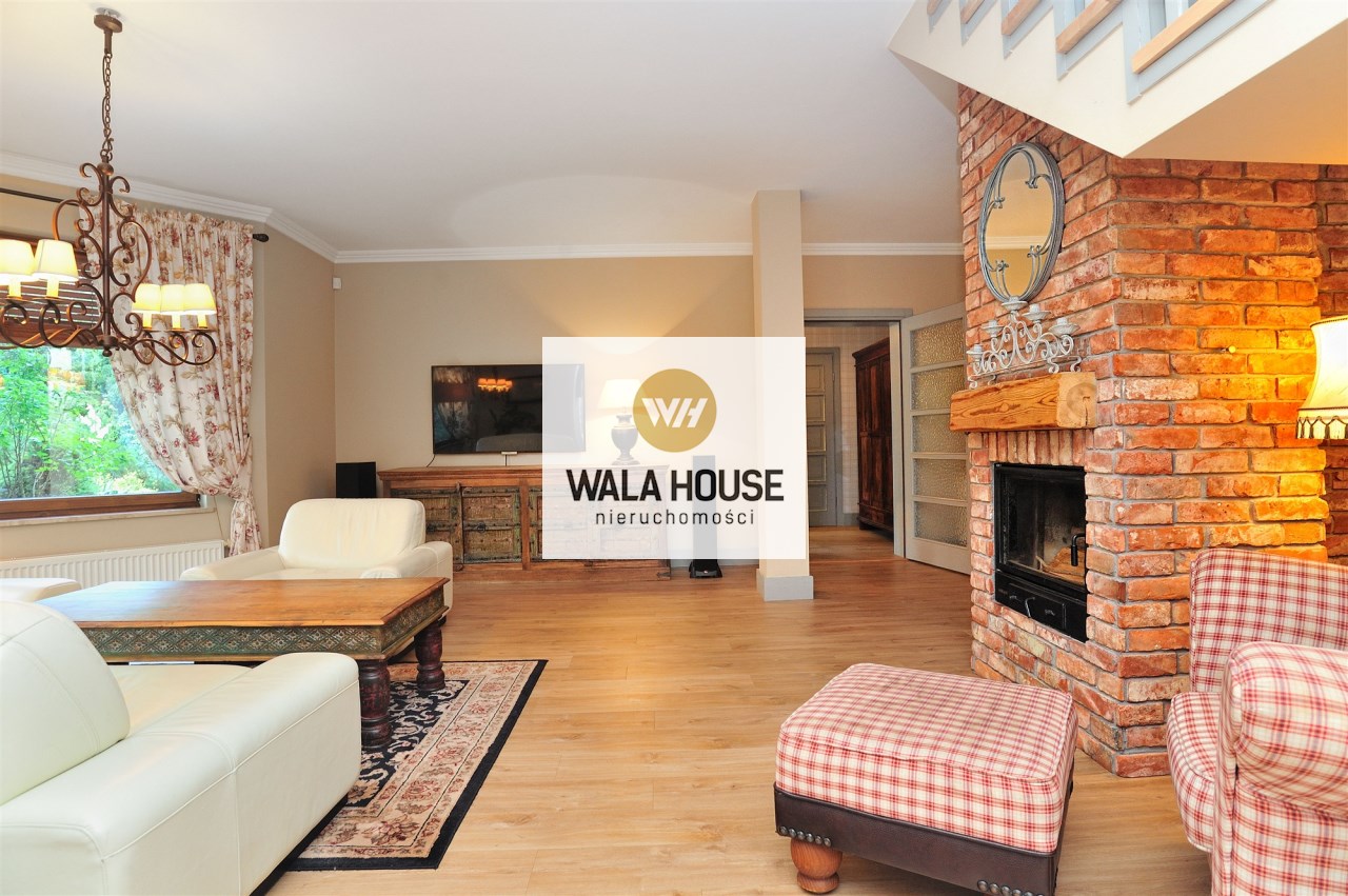 Wnętrza zostały zaprojektowane z myślą o wygodzie domowników. Przestronny, jasny salon z kominkiem stanowi centrum życia rodzinnego. Z salonu prowadzi wyjście na taras i do ogrodu, co sprzyja odpoczynkowi na świeżym powietrzu.