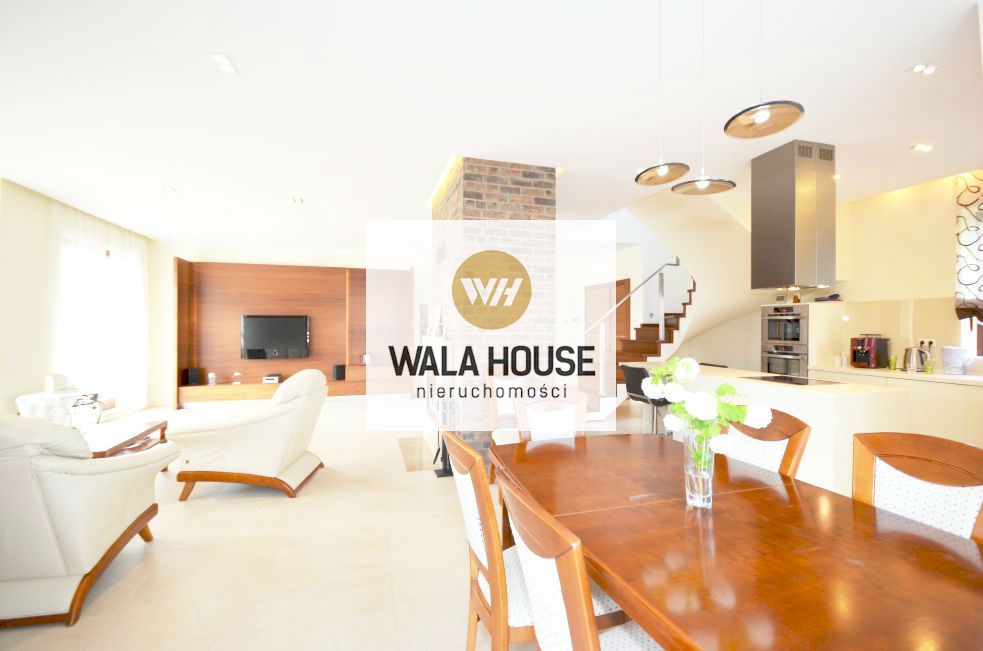 Parter: przestronny salon z jadalnią i otwartą kuchnią w markowej zabudowie (wyposażonej w markowy sprzęt AGD - całość 70m2, łazienki z prysznicem - deszczownica razem z toaletą, garderoby, pomieszczenia gospodarczego z pralnią razem z kotłownią - przejście do garażu dwustanowiskowego (brama automatyczna), przedpokoju oraz hollu.