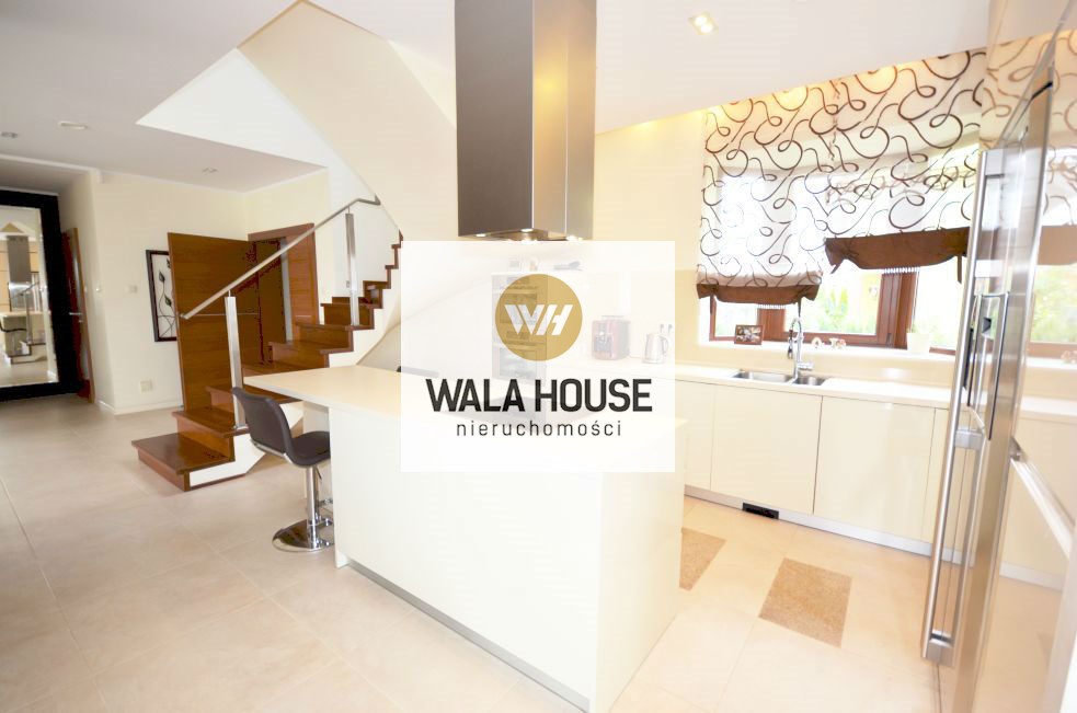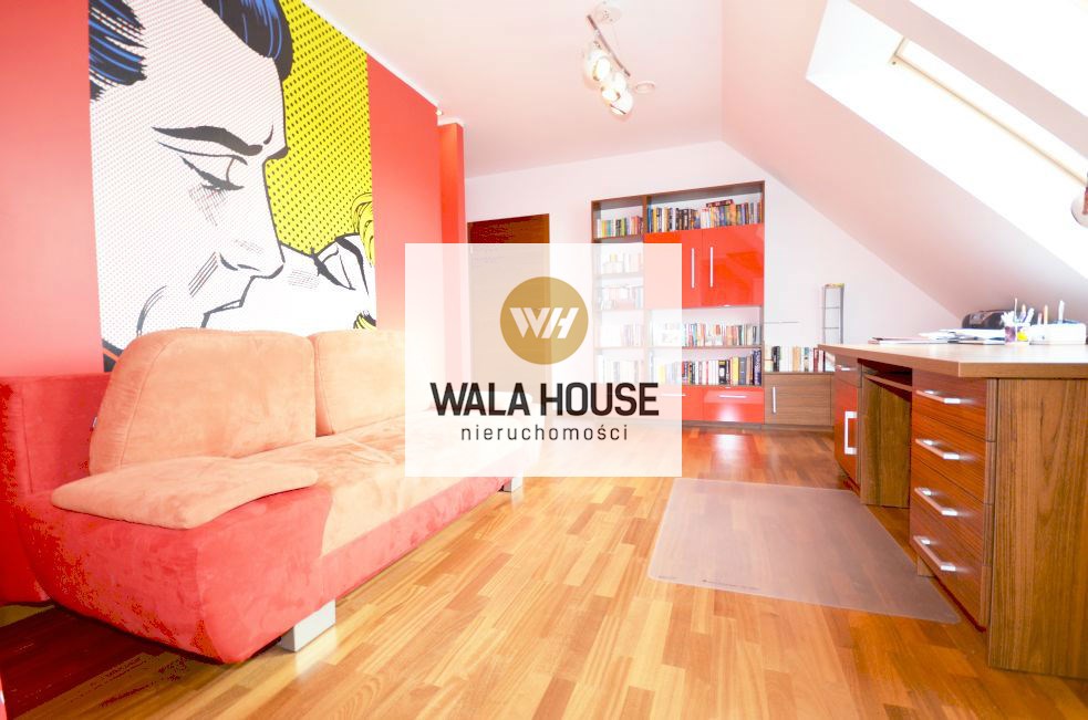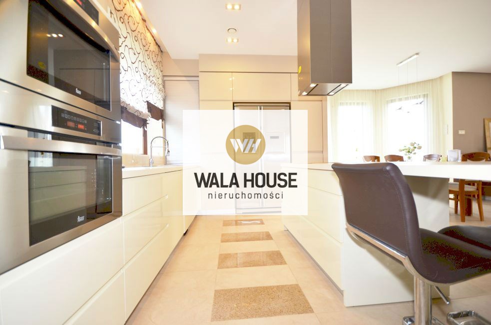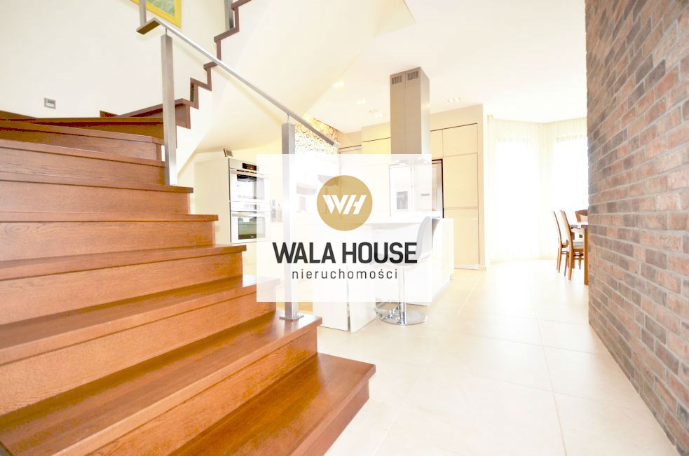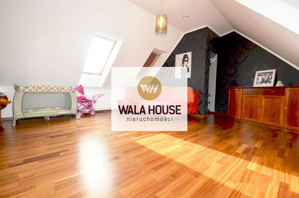Piętro: cztery pokoje/sypialnią: pierwsza sypialnia z wyjściem na balkon - ok. 17m2, garderobą; druga z antresolą i garderobą - 27m2, trzecia sypialnia z przejściowa do czwartej z własną garderobą - całość 35m2, główna łazienka z wanną, dwoma zlewami, kilkoma zabudowami na ręczniki - ok. 11m2, przedpokój. Nieruchomość wykończona w bardzo nowoczesny sposób, przy zastosowaniu wysokiej klasy materiałów.