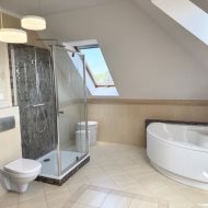Poddasze: hall, 4 sypialnie (w tym główna z balkonem), łazienka.