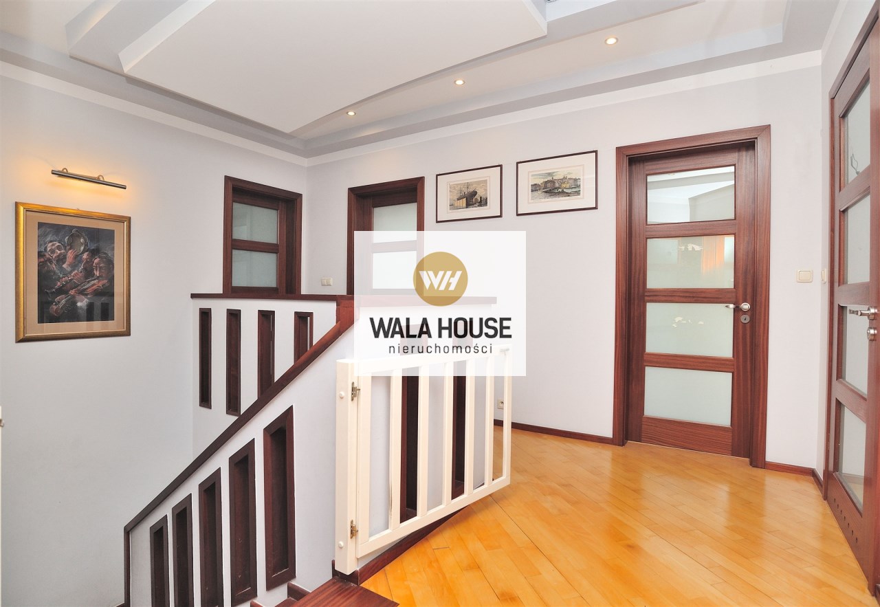 Na piętrze znajduje się pięć sypialni, w tym główna sypialnia z własną łazienką i garderobą, oraz dodatkowa łazienka.