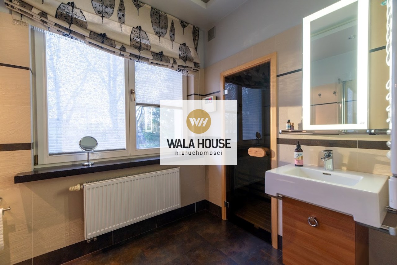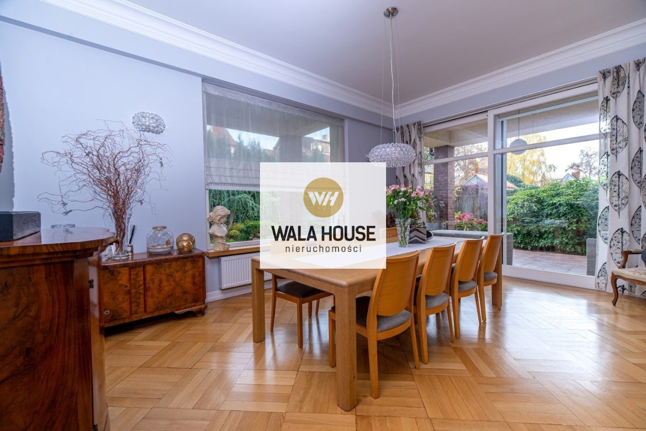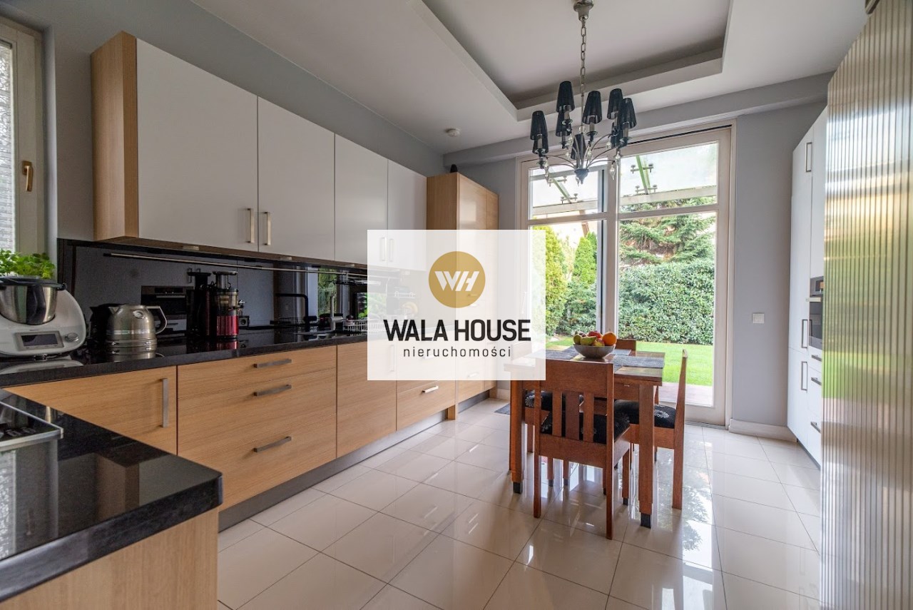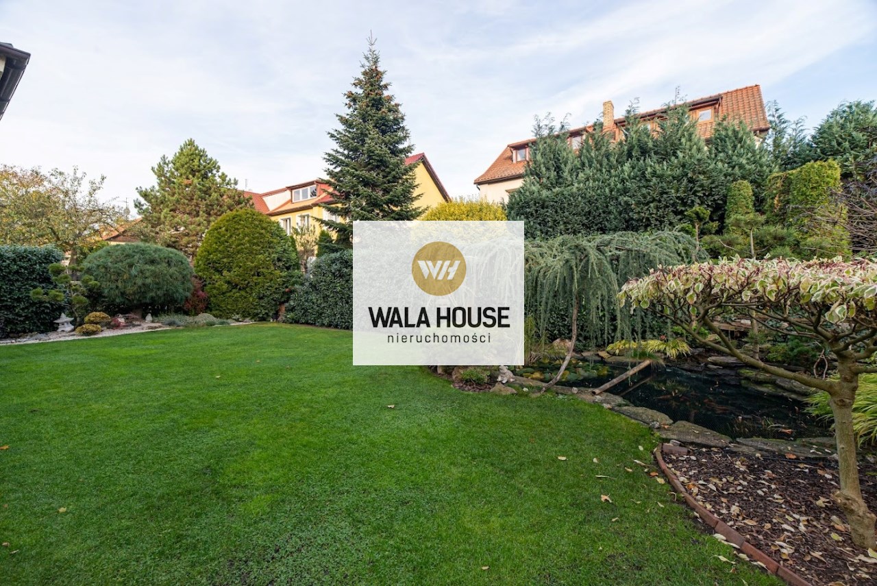 Nieruchomość usytuowana jest frontem do parku, na przepięknie zagospodarowanej działce o powierzchni 716 m² z oczkiem wodnym zarybionym, licznymi nasadzeniami i idealnie utrzymanym trawnikiem wyposażonym w automatyczny system nawadniania i robota koszącego.