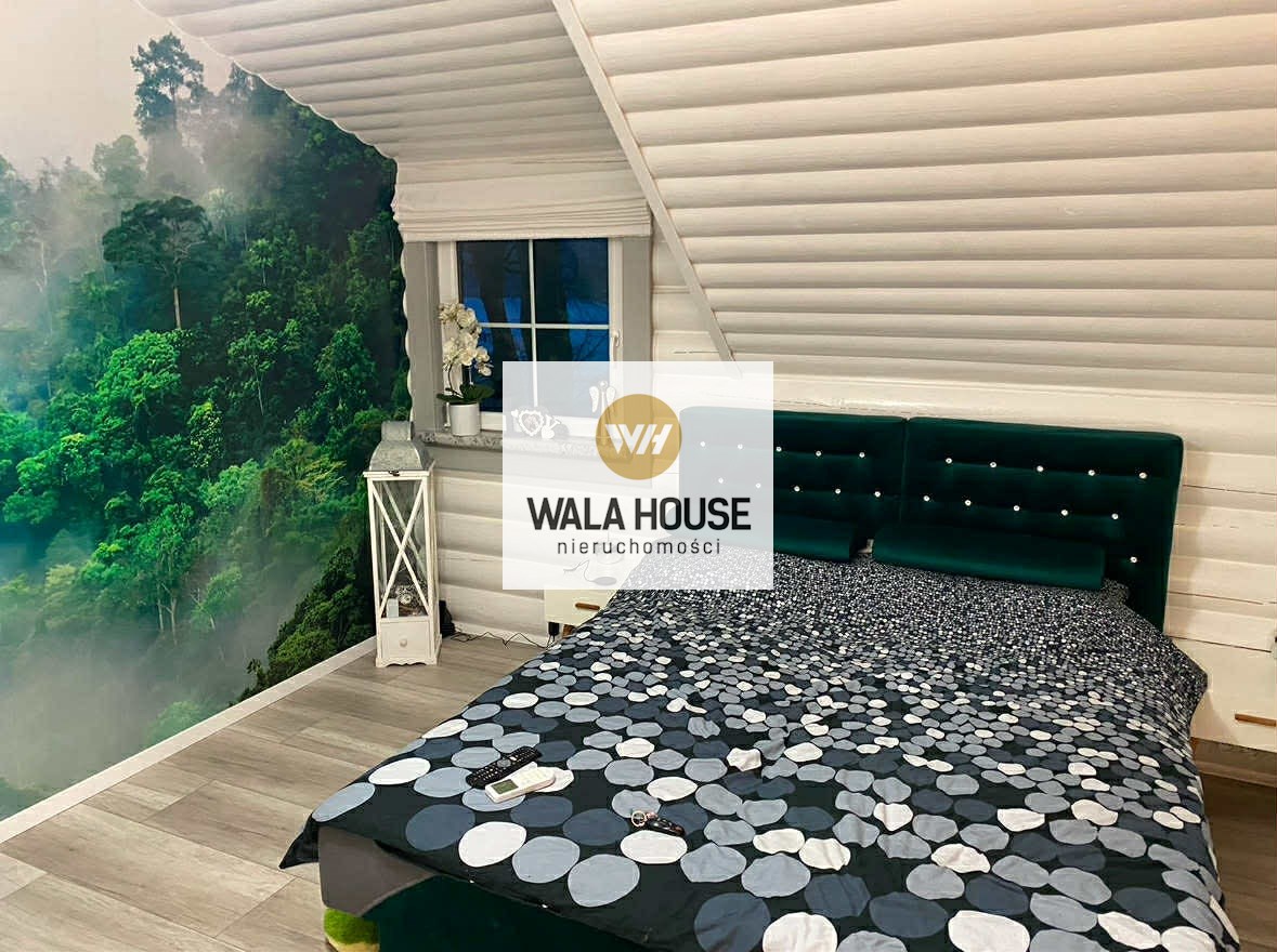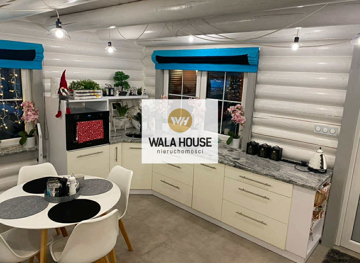 Dom wykonany z naturalnego bala drewnianego tworzy niepowtarzalny klimat – ciepły, przytulny i harmonijnie wpisujący się w otoczenie lasów i jeziora. Duże przeszklenia zapewniają doskonałe doświetlenie wnętrza i widok na zieleń.