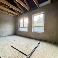 ogrzewanie podłogowe w całym budynku (rozstaw: dół co 10 cm, góra 12,5 cm; indywidualne sterowanie w każdym pomieszczeniu - bez łazienek),