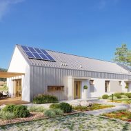 Ergonomiczny dom, zaprojektowany z myślą o praktycznych aspektach użytkowania. Bardzo słoneczny i przytulny, taras i ogród od strony południowo-wschodniej. Nowoczesny i ekologiczny budynek przeznaczony dla rodziny 3-4 osobowej, niepodpiwniczony, zewnętrzne dwa miejsca parkingowe.