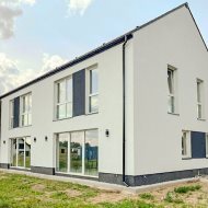Każdy z dwóch lokali zajmuje 375 m2 zagospodarowanej działki, która zapewnia prywatność oraz przestrzeń do relaksu i rekreacji. Każdy lokal o powierzchni 99,64 m2 składa się z przestronnego salonu połączonego z kuchnią, czterech jasnych pokoi, dwóch łazienek oraz dodatkowego, ocieplonego poddasza o powierzchni 17 m2, idealnego na przechowywanie lub dodatkową przestrzeń mieszkalną.