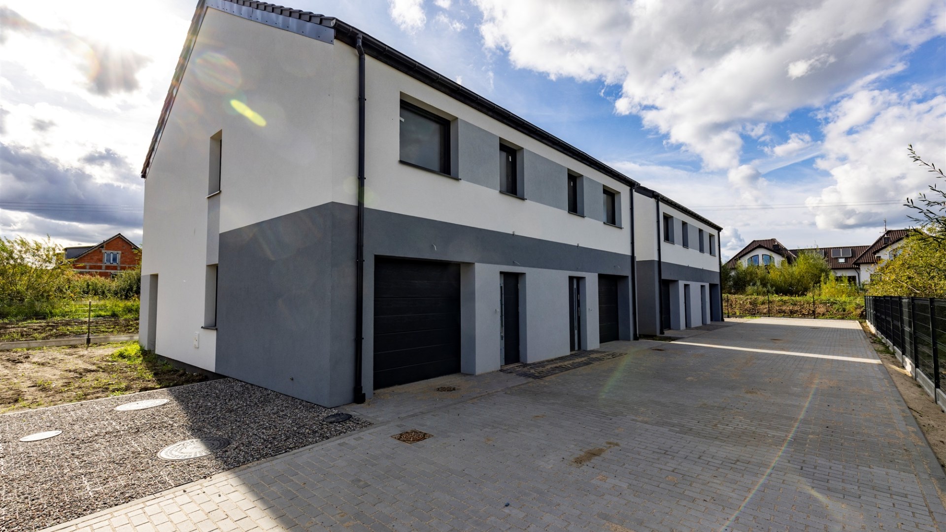 Inwestycja obejmuje 4 domy w zabudowie bliźniaczej na działce o powierzchni 1001m2.