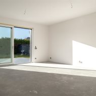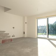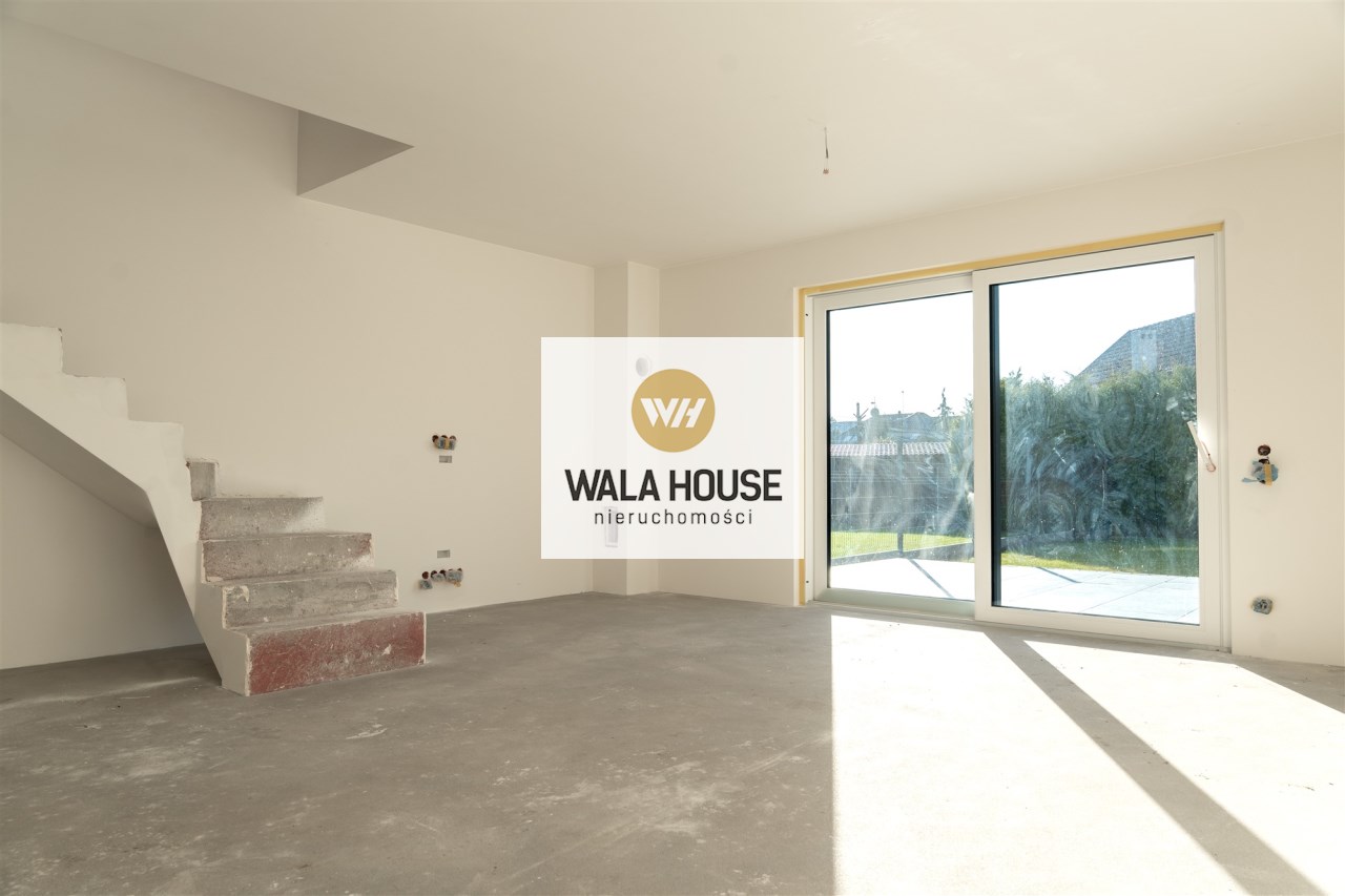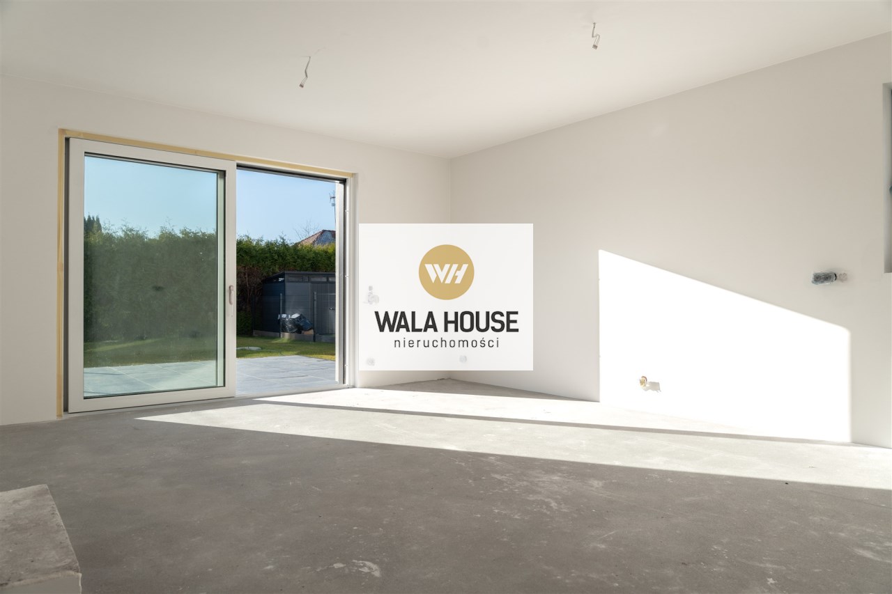 Parter : salon z aneksem kuchennym oraz wyjściem na taras i ogród od strony południowej, pokój idealny na biuro lub pokój gościnny, wiatrołap, łazienka oraz pomieszczenie gospodarcze.