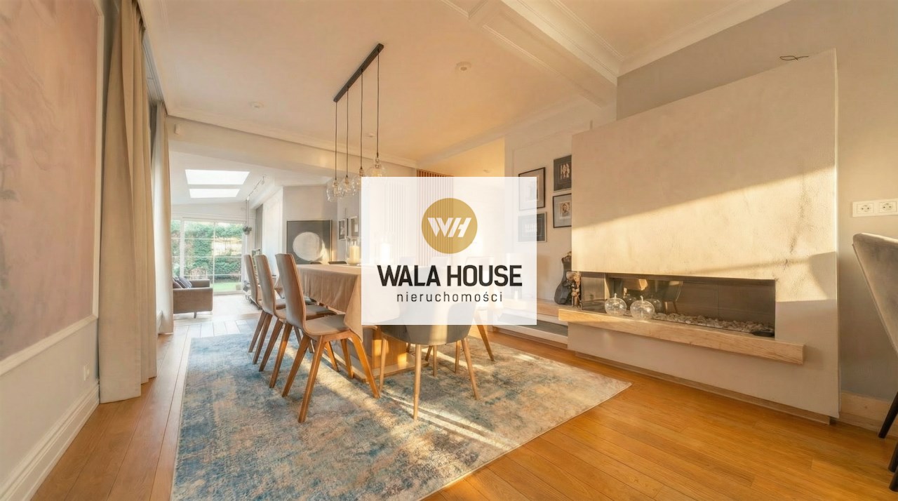 - otwarta jadalnia z dużym stołem i kominkiem