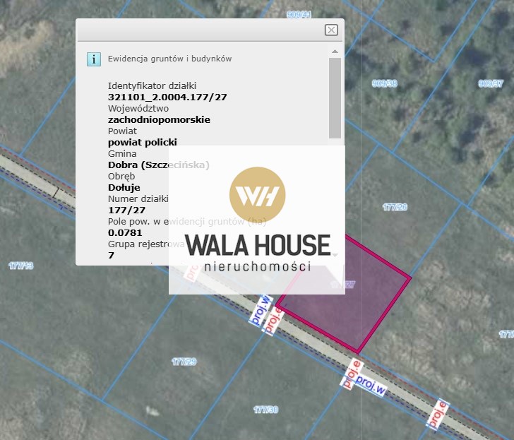 Działka nr 177/27. Działka 177/24 również na sprzedaż. Pozostałe dwie o nr 177/25 i 177/26 sprzedane