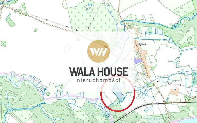Dojazd drogą polną, uzbrojenia brak, linia energetyczna 400m, odległość od zabudowań wsi Ognica 600m.