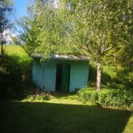 Obecnie na nieruchomości jest drewniany dom rekreacyjny w bardzo dobrym stanie i z bardzo dobrym wyposażeniu o powierzchni na parterze 35m2 i piętrze około 20m2. Na parterze salon a aneksem kuchennym i łazienka, na górze sypialnia. Domek w pełni wyposażony. Działka ma prąd, własne ujęcie wody, szambo. Na działce jest bijące źródło wody o właściwościach prozdrowotnych.