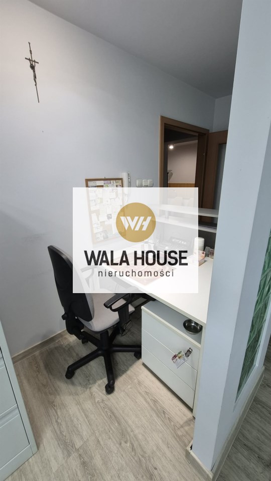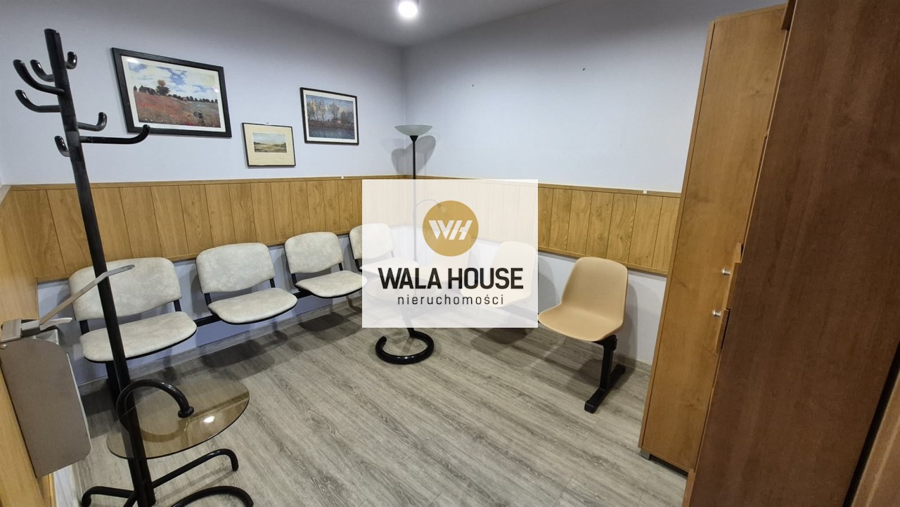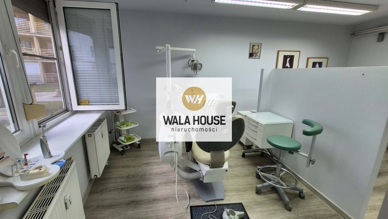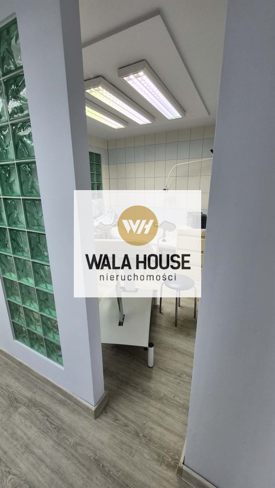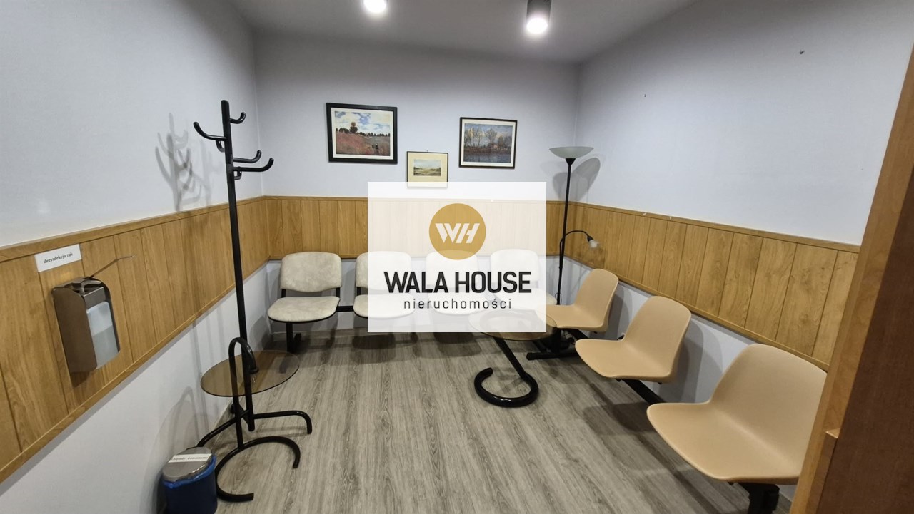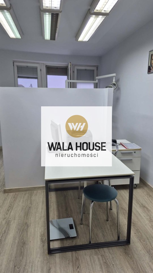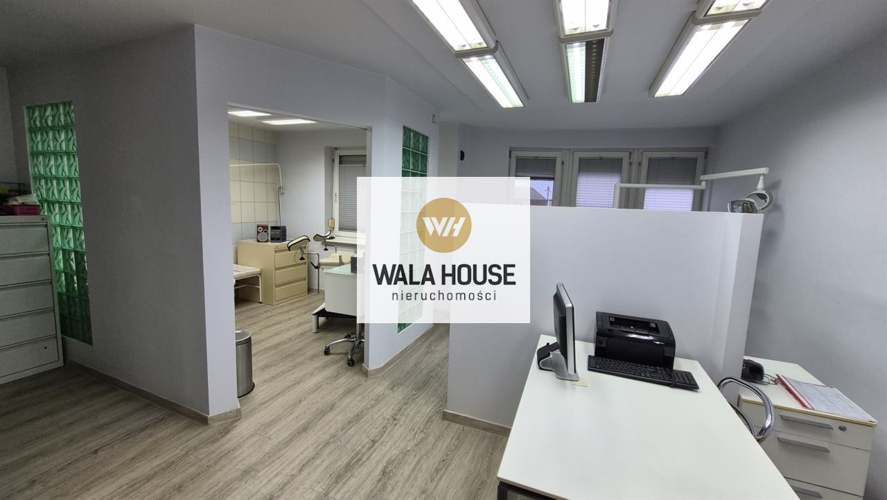 hol, obok jest poczekalnia z niej wejscie do pokoju socjalnego. WC dla pacjentów. Recepcja a za nią 2 gabinety. W głębi lokalu jest aneks kuchenny i łazienka z prysznicem. Niski czynsz ok 450 zł z funduszem remontowym, ogrzewaniem itp do dodatkowe zalety. Okna PCV, rolety, ściany w gładziach malowane, na podłogach są panele i płytki. Oferta również do wynajęcia za 5000 zł + opłaty. Klucze w biurze, oferta na wyłączność. Zapraszam