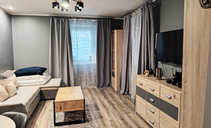 Mieszkanie 46,5m2 : salon, sypialnia, kuchnia łazienka z WC, przedpokój