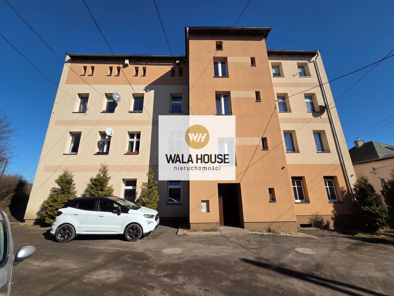 Przy budynku miejsca parkingowe dla mieszkańców.