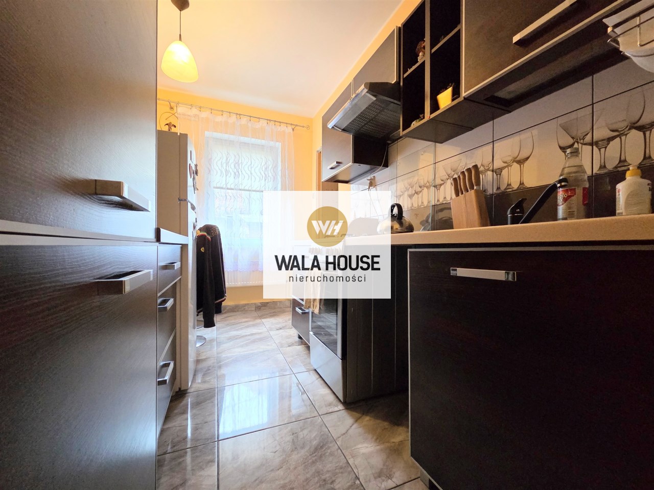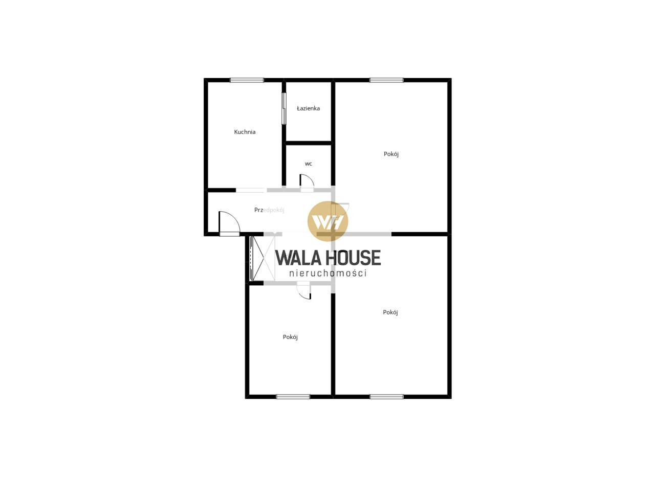 Składa się z trzech pokoi, kuchni, łazienki, wc i dwóch przedpokoi, o łącznej powierzchni użytkowej 49,67 m2. Do mieszkania przynależy duża piwnica ok 7 m2, znajdująca się pod pokojem (istnieje możliwość przebicia się).