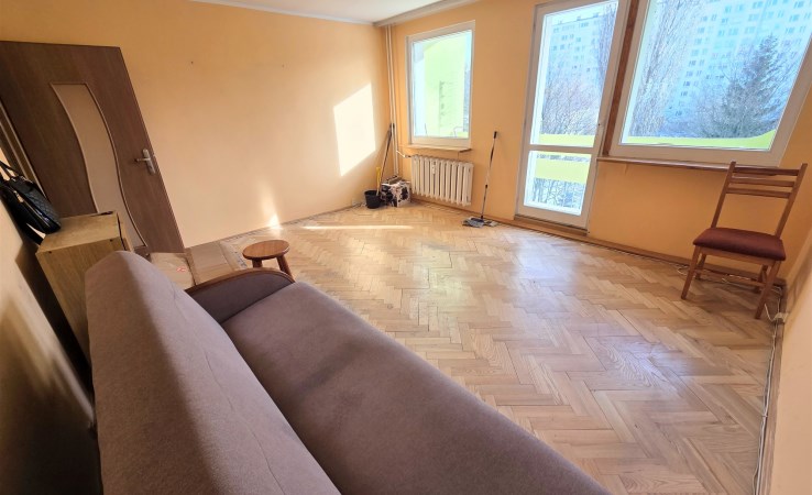 Mieszkanie, położone na pierwszym piętrze w budynku czteropiętrowym, po termomodernizacji. Składa się z salonu z balkonem, pokoju, kuchni, łazienki z wc i przedpokoju, o łącznej powierzchni użytkowej 48 m2. Do mieszkania przynależy piwnica.