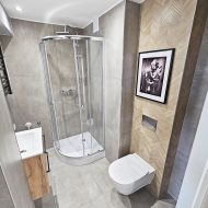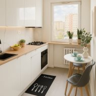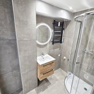 Kuchnia w nowoczesnej zabudowie wyposażona w płytę indukcyjną, piekarnik, zmywarkę, okap (wszystkie sprzęty NOWE)
