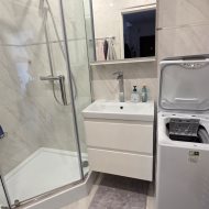 Składa się z salonu z otwartą kuchnią, sypialni, pokoju, łazienki, wc i przedpokoju, o łącznej powierzchni użytkowej 56 m2. Do mieszkania przynależy piwnica oraz balkon.