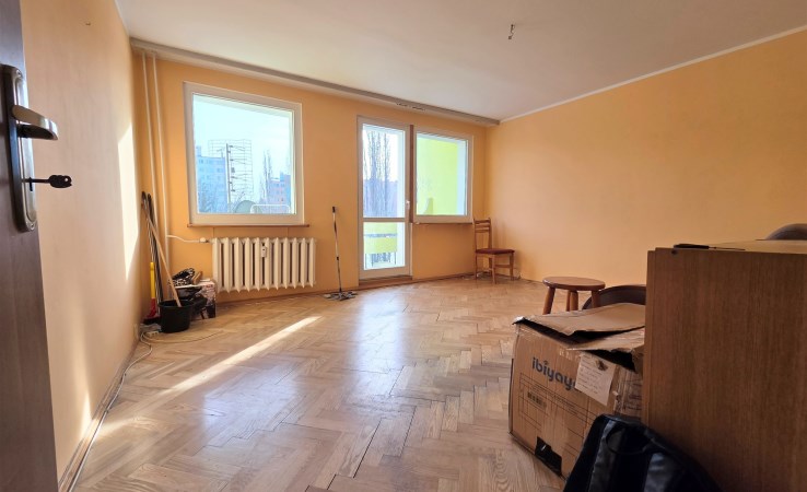 Mieszkanie, położone na piątym piętrze w budynku dziesięciopiętrowym, po termomodernizacji. Składa się z salonu z balkonem, dwóch pokoi, kuchni, łazienki, osobno wc i przedpokoju, o łącznej powierzchni użytkowej 63 m2. Do mieszkania przynależy piwnica.