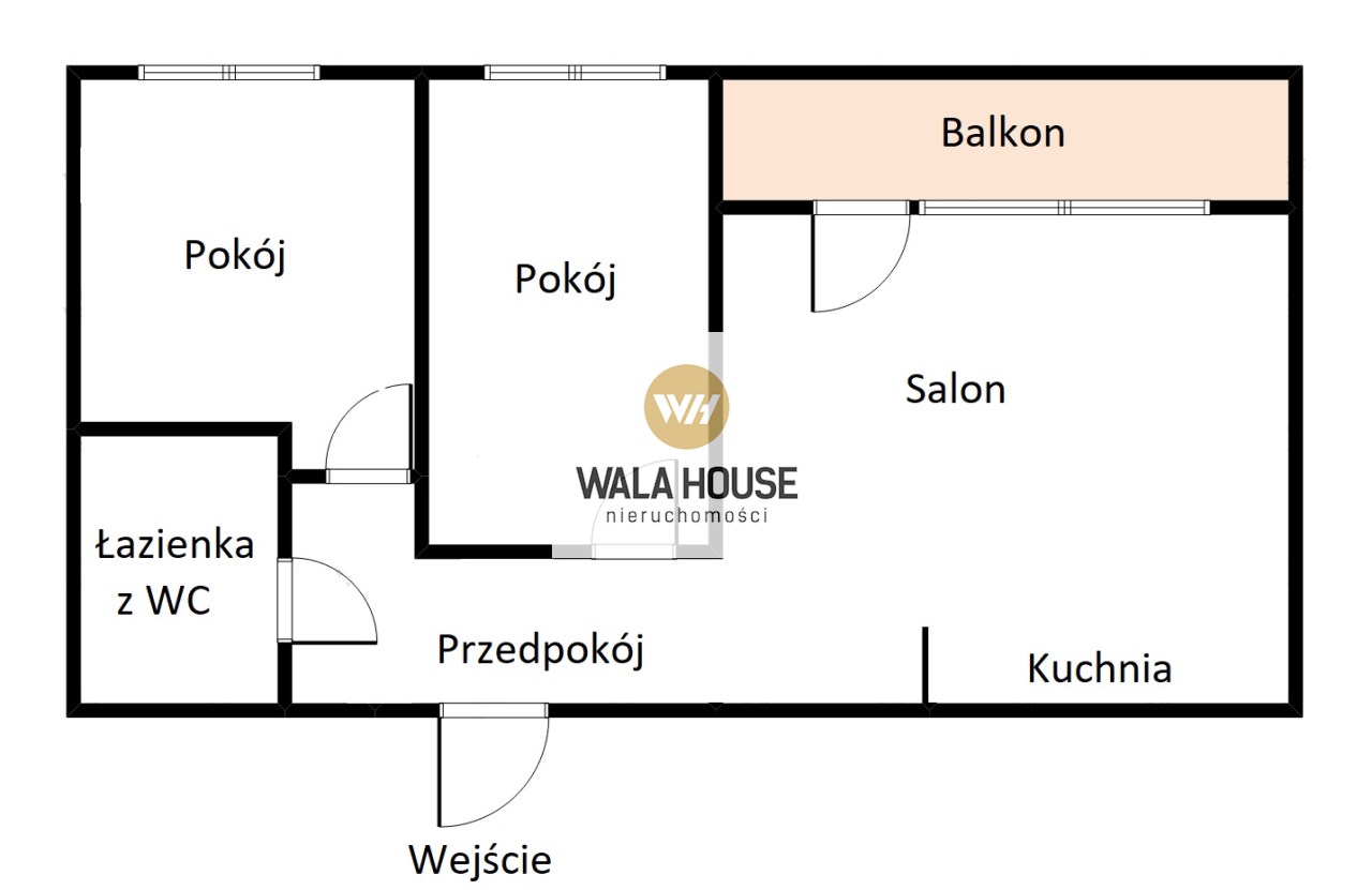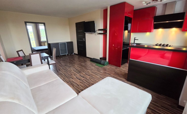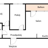Lokal o powierzchni 52m2 składa się z: salon z aneksem kuchennym, dodatkowo 2 pokoje, łazienka z WC, przedpokój, balkon i piwnica