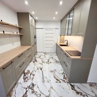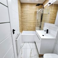 Wnętrze jest świeżo po generalnym remoncie. Wykonano wymianę wszystkich instalacji, drzwi - zarówno wewnętrznych jak i zewnętrznych, wymianę i wyrównanie podłóg, gładzie na ścianach, podwieszane sufity. Wszystko jest nowe a materiały użyte do remontu są wysokiej jakości (szklane gniazdka i włączniki światła, zestaw podtynkowy firmy Geberit, miska WC Roca, nowe okna 3 szybowe, grzejniki 3 płytowe, wanna z panelem prysznicowym i szklaną kotarą, rekuperator, nowy piec gazowy).