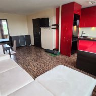 W przedpokoju pojemna szafa, kuchnia umeblowana i wyposażona w sprzęty AGD, w salonie wypoczynek oraz stół z krzesłami, w sypialni łóżko i dodatkowe meble - całość widoczna na zdjęciach pozostaje w cenie mieszkania.