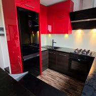 Wysoka kondygnacja zapewnia piękne widoki z okien. Wyburzone ściany i zmieniony układ mieszkania, sprawiają, że wydaje się dużo większe niż w rzeczywistości. Jest to zdecydowanie godne obejrzenia mieszkanie.
