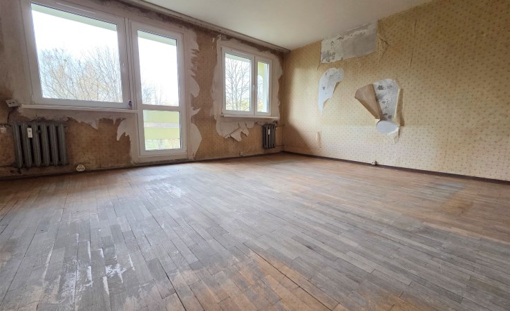 Mieszkanie po kapitalnym remoncie, o zmienionym układzie pomieszczeń, składa się z salonu z otwartą kuchnią, pokoju, sypialni z garderobą i balkonem, łazienki z wc oraz przedpokoju, o łącznej powierzchni użytkowej 64 m2. Do mieszkania przynależy piwnica.