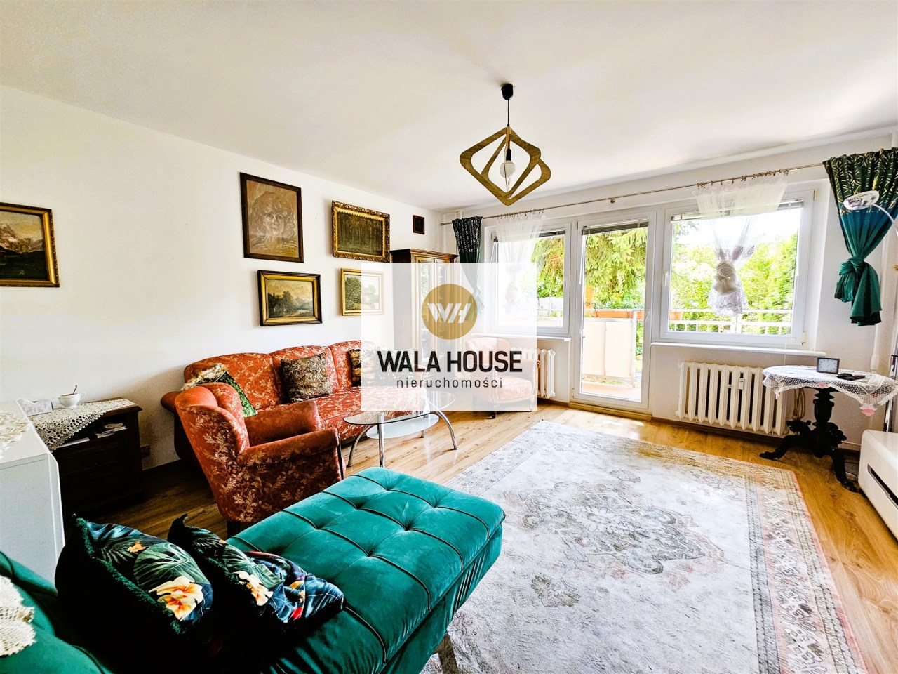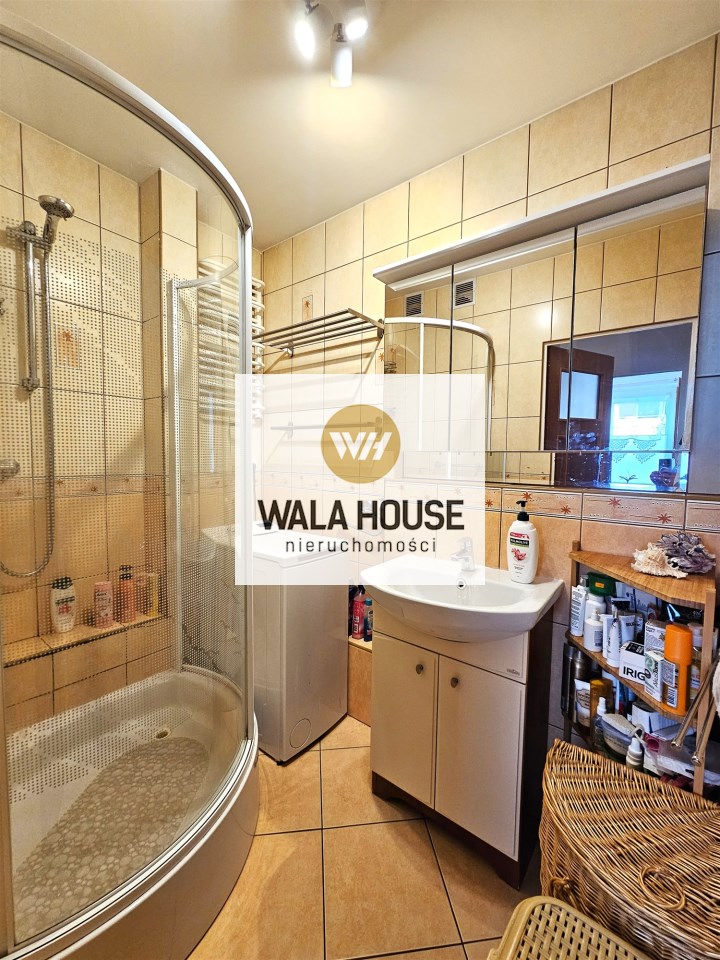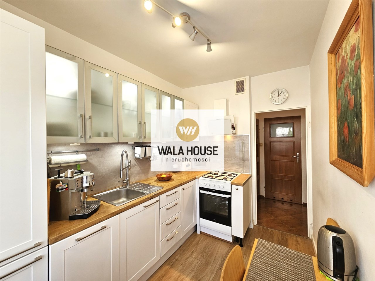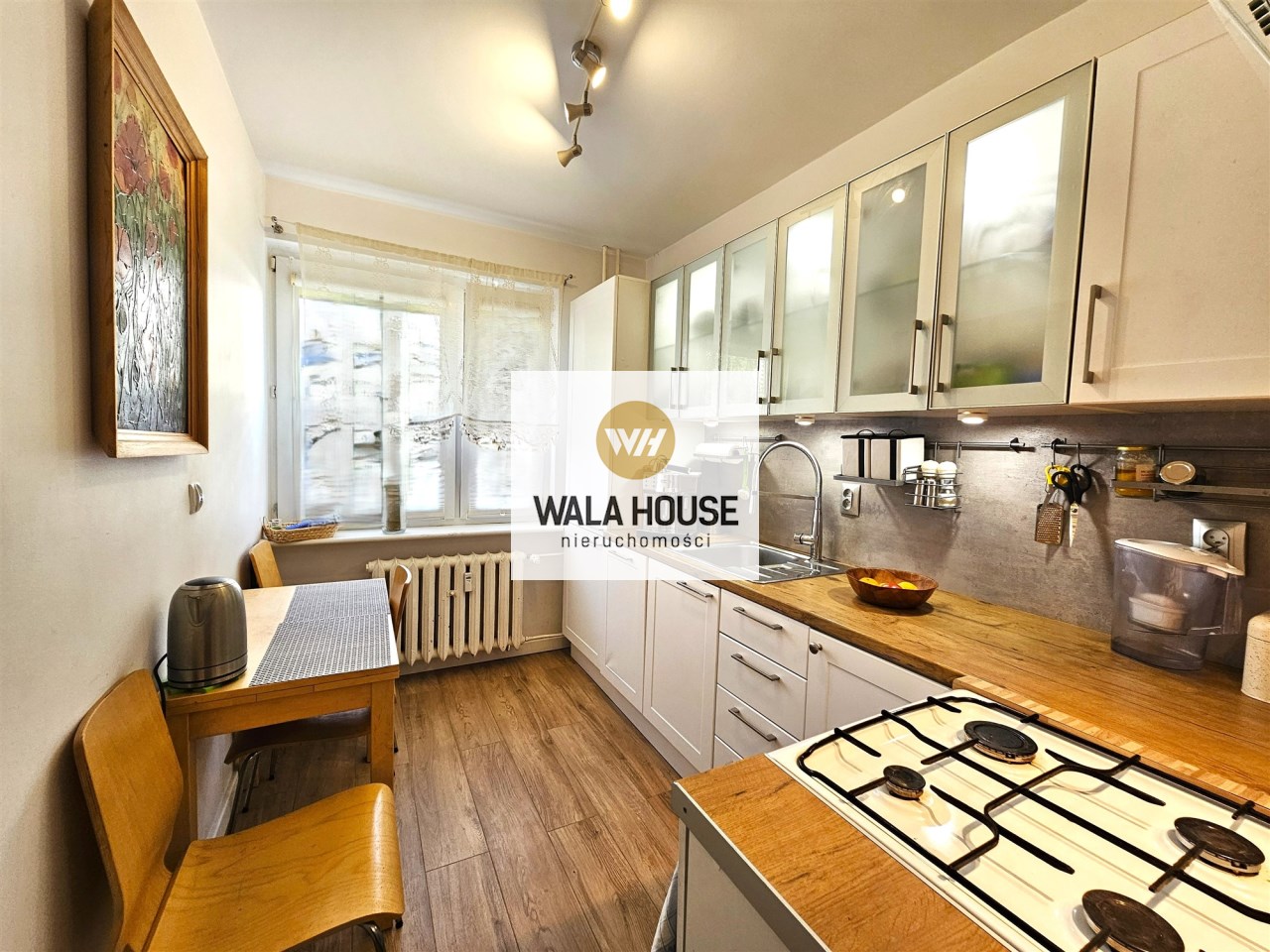 Mieszkanie o powierzchni 49,4 m2. Składa się z przestronnego salonu, sypialni, oddzielnej kuchni z oknem, łazienki z kabiną prysznicową, oddzielnego WC oraz korytarza. Z salonu wyjście na duży balkon, a z niego bezpośrednie zejście do ładnie zagospodarowanego ogródka. Ogrzewanie i ciepła woda z sieci miejskiej. Mieszkanie ciepłe środkowe. Co roku występują duże zwroty z tytułu ogrzewania.