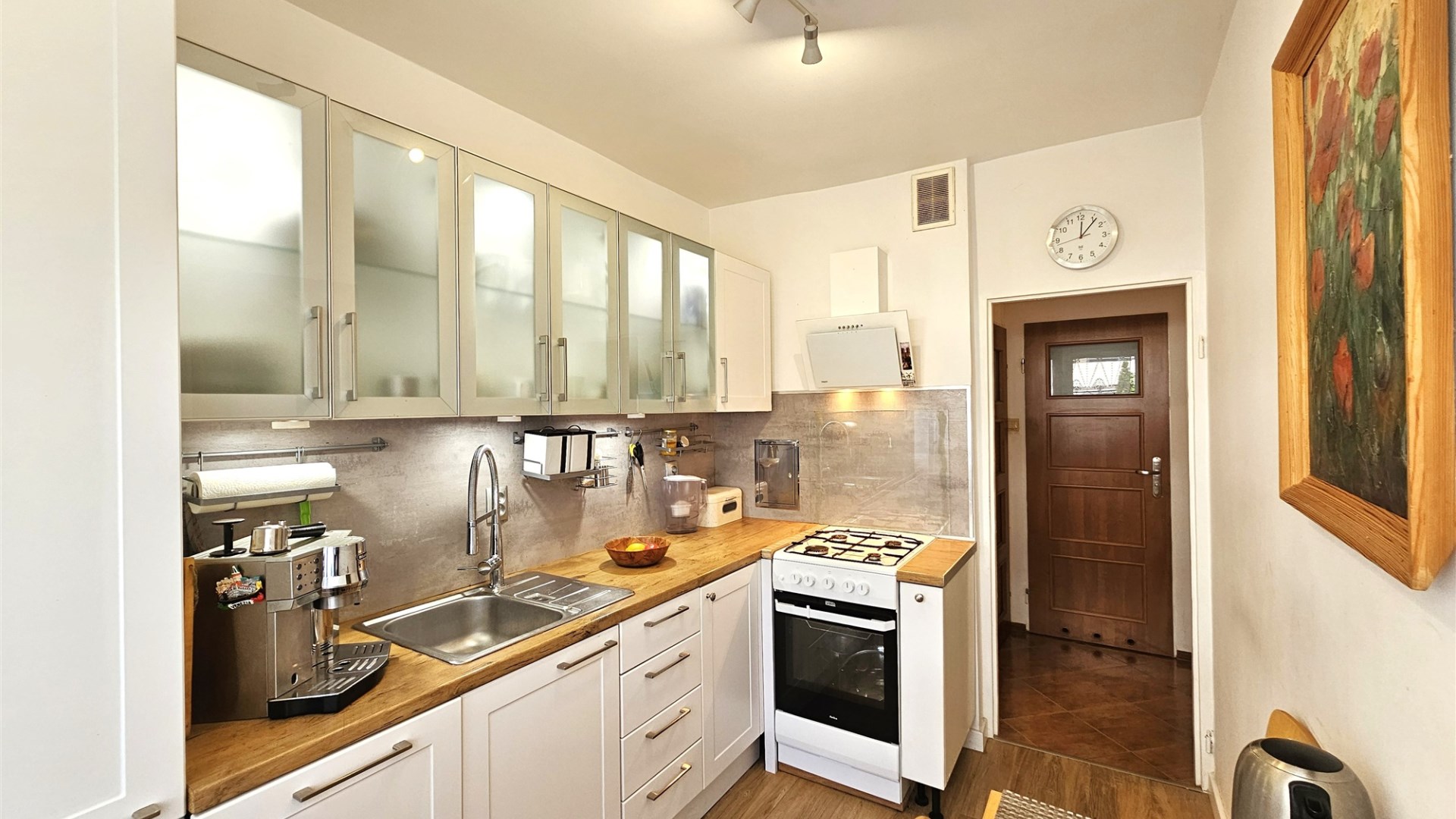 W cenie mieszkania pozostaje większość umeblowania oraz zabudowa kuchenna z lodówką, kuchenką, pochłaniaczem i zmywarką.