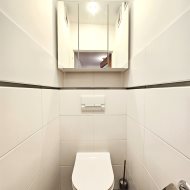 W pokojach na podłodze panele. W łazience, WC i kuchni kafle. Do mieszkania przynależy piwnica.
