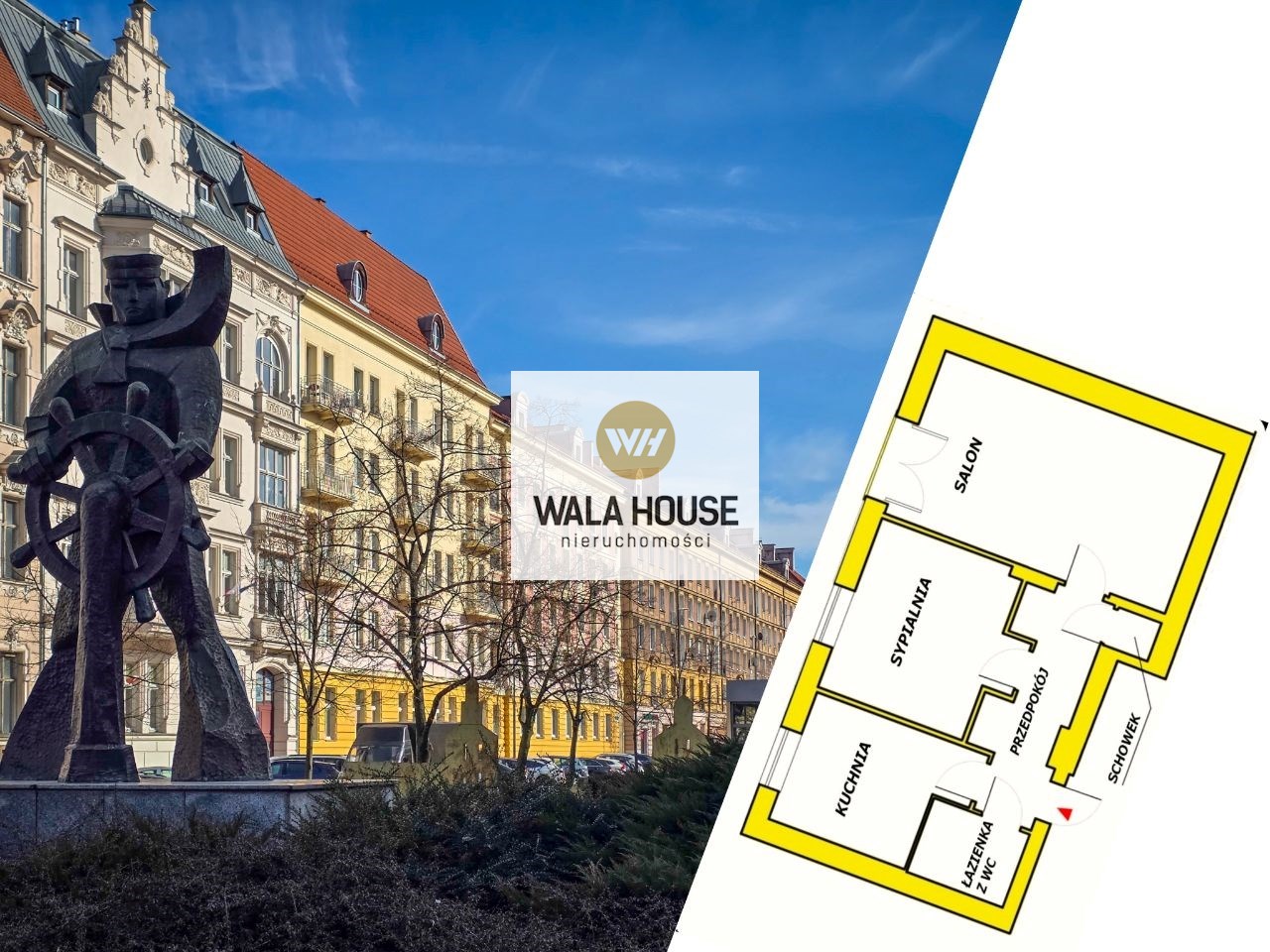 Mieszkanie jest zlokalizowane na 3 piętrze w budynku z 1952 roku, położonym w samym Centrum Szczecina, przy Alei Papieża Jana Pawła II, na odcinku zwanym przez Szczecinian Aleją Fontann. Jest to miejsce dobre do zamieszkania jak i pod wynajem.