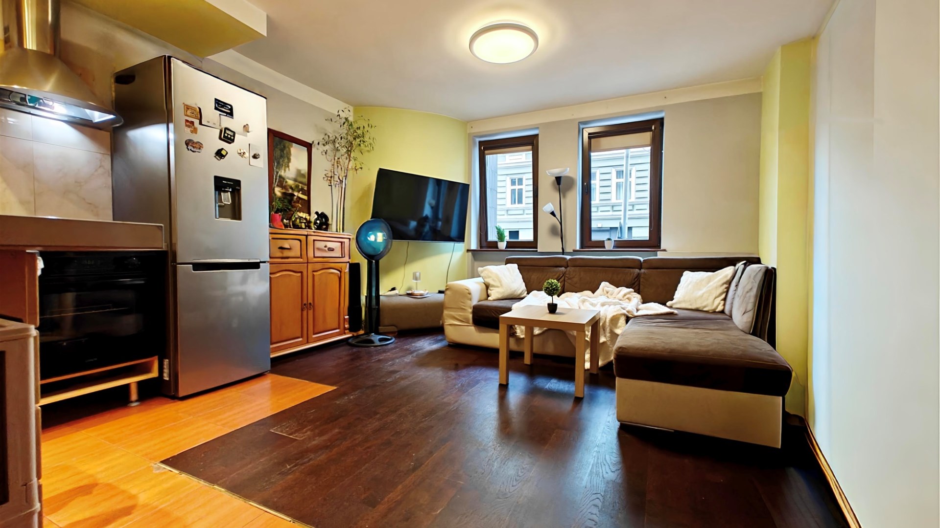 Lokal jest dwustronny (wschód–zachód) i został podzielony na dwa niezależne mieszkania: 2-pokojowe (ok. 40 m²) oraz studio (ok. 20 m²). Istnieje możliwość powrotu do układu pierwotnego lub wykonania osobnego wejścia – idealne rozwiązanie dla kancelarii, biura lub gabinetu. Bardzo łatwym sposobem można przewrócić do stanu pierwotnego (w zależności od zapotrzebowania kupującego).